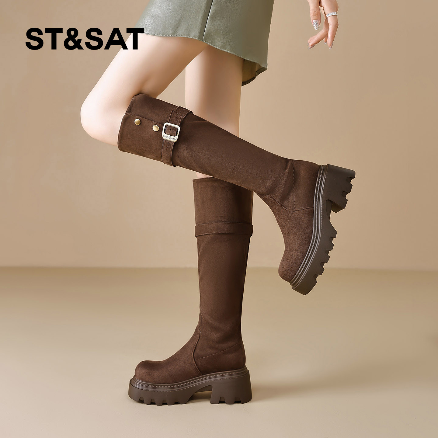 星期六长筒靴女2025冬季新款女靴女款粗跟高筒超火靴子长靴骑士靴