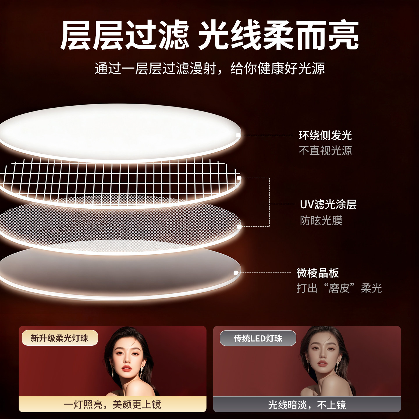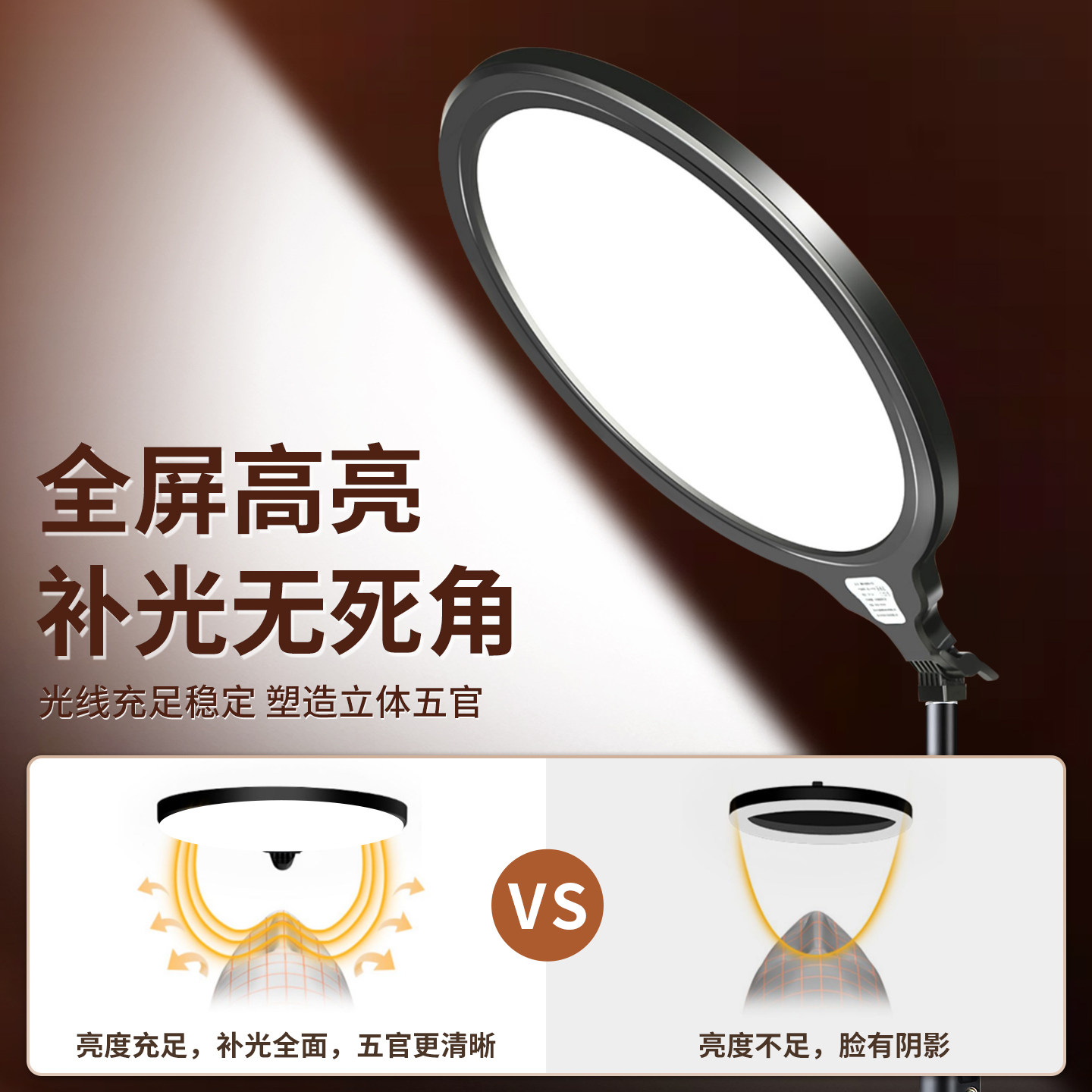 【全屏无影】手机直播补光灯桌面主播专用拍摄专业拍照面部美颜直播间打光灯面光柔光支架视频摄影落地三脚架