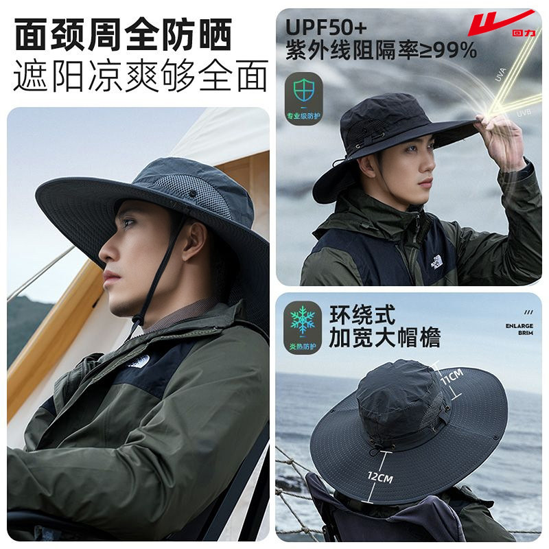 回力防晒渔夫帽西部牛仔遮脸太阳帽男户外透气遮阳帽面罩登山防风