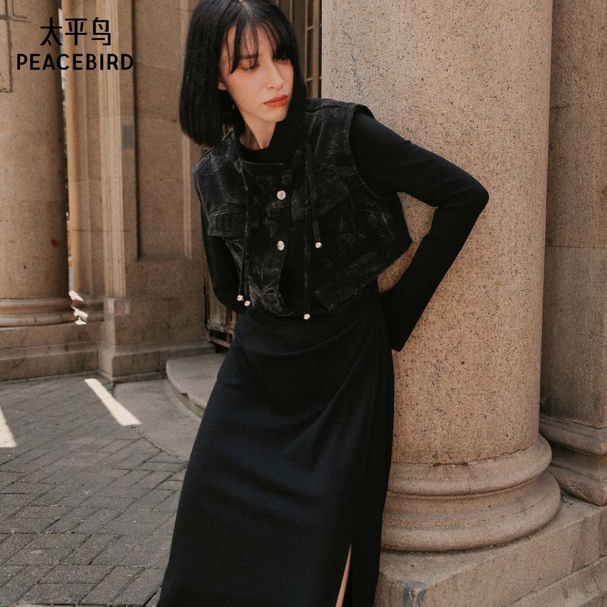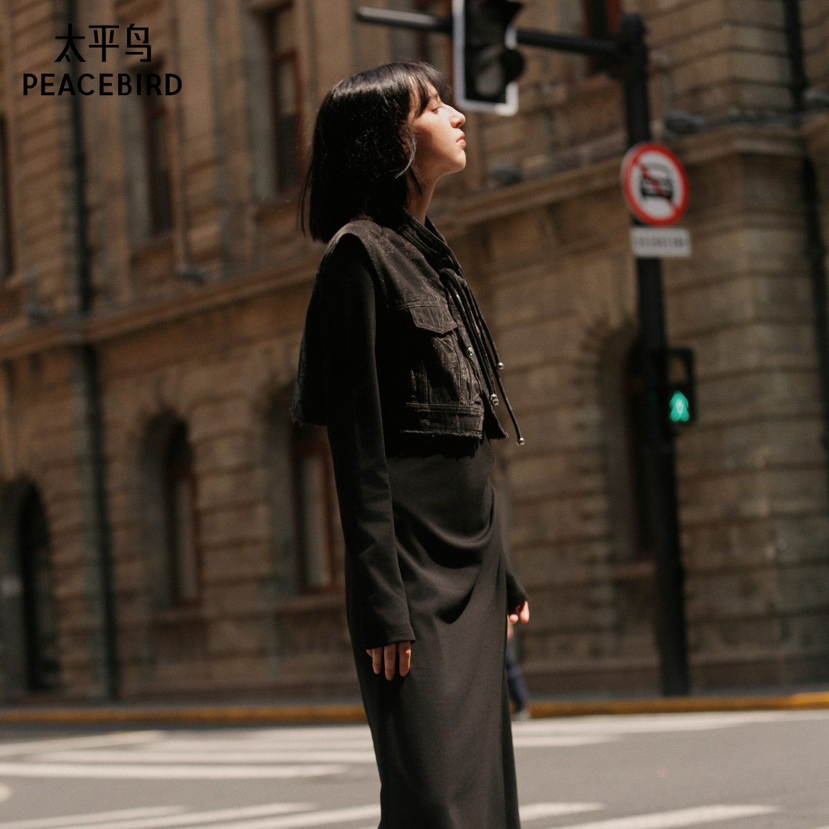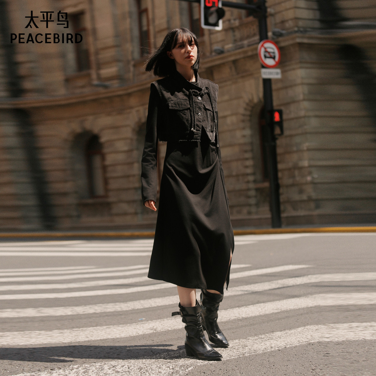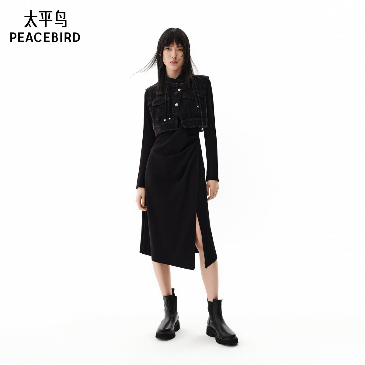 太平鸟女装年冬季款牛仔提花连衣裙A3FCE4169