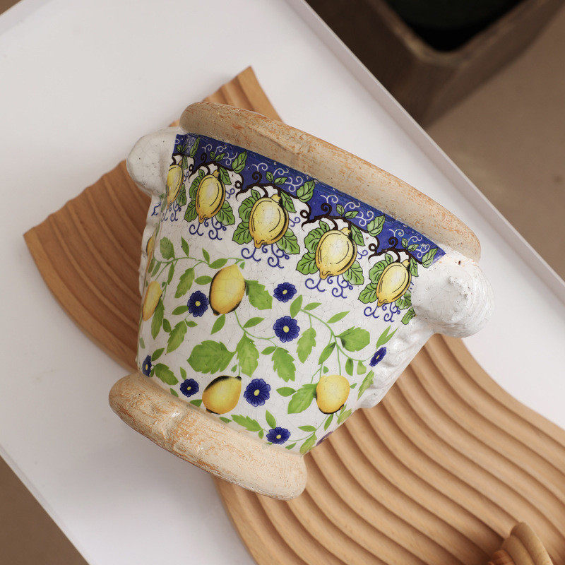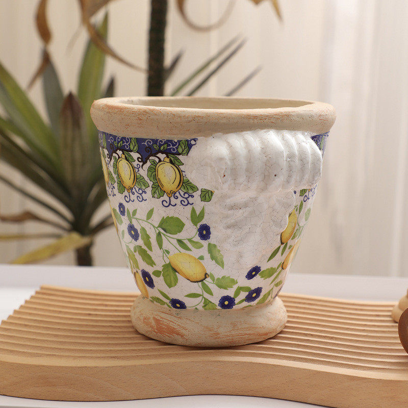 果粗陶柠檬手压花面外加手绘仿古效果家居客厅玄关花盆花器