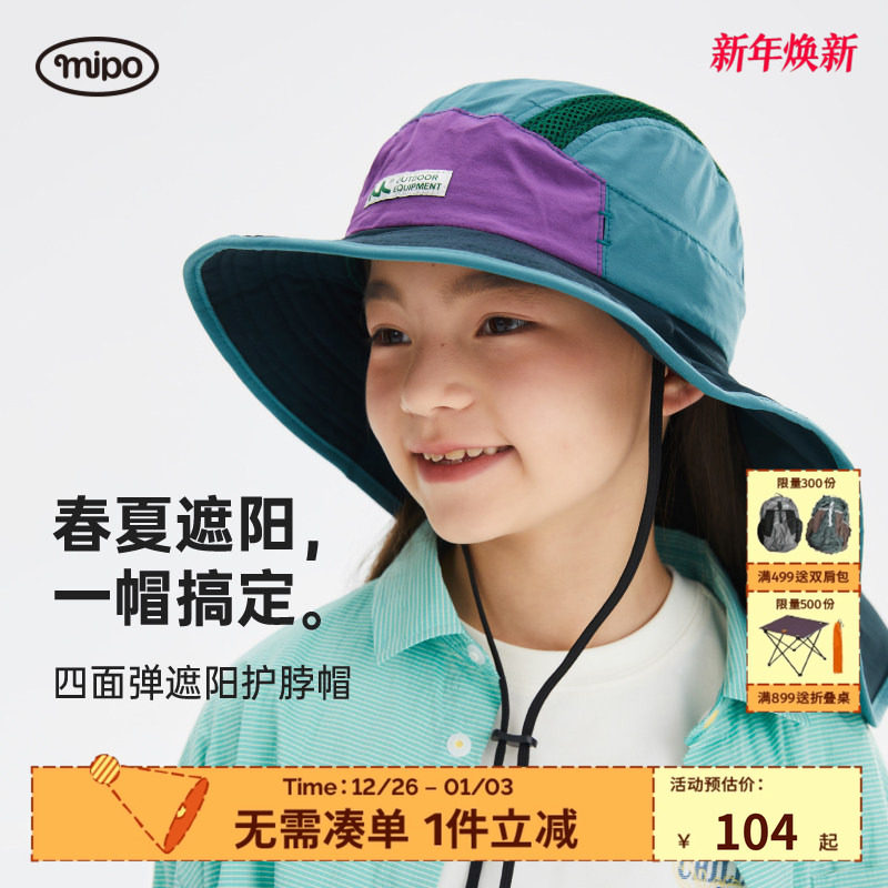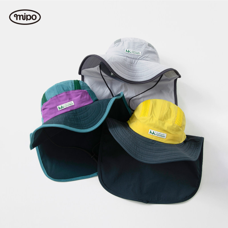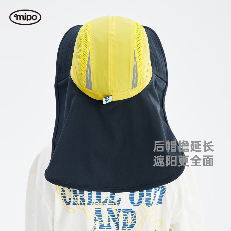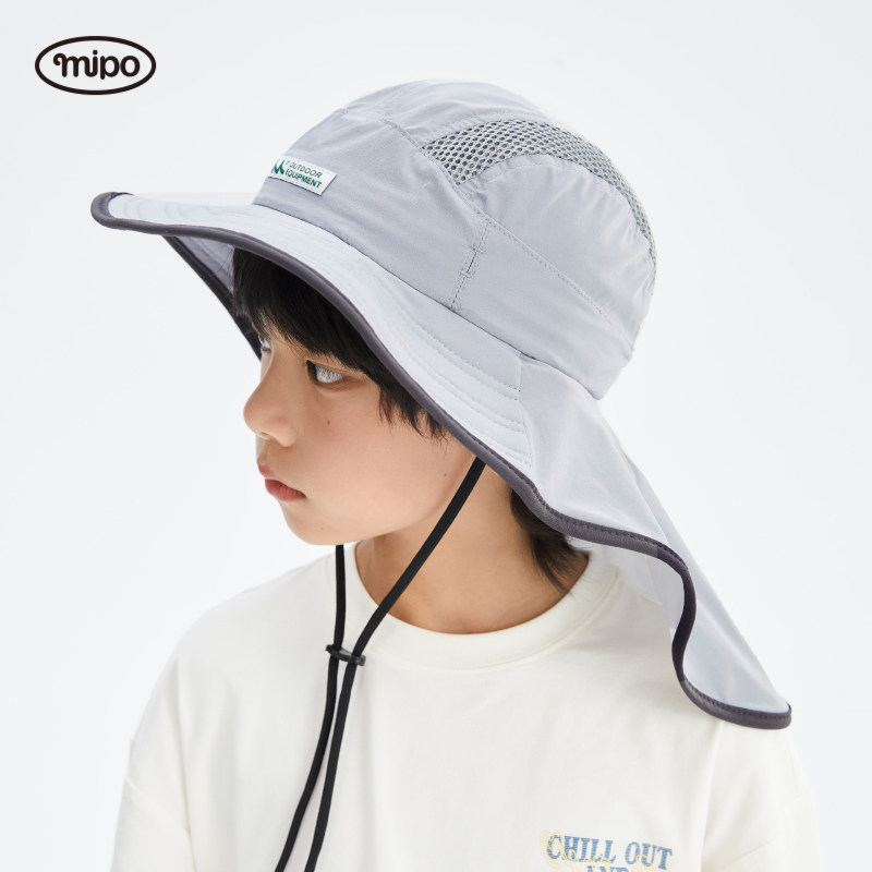 mipo儿童渔夫帽春夏季男女童户外休闲加长帽檐透气遮阳帽防晒帽子