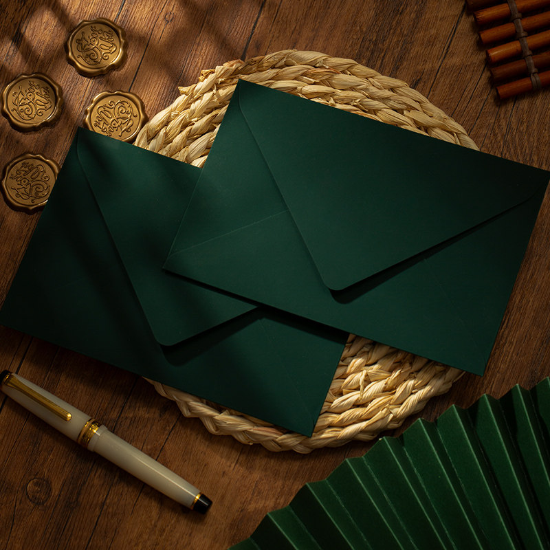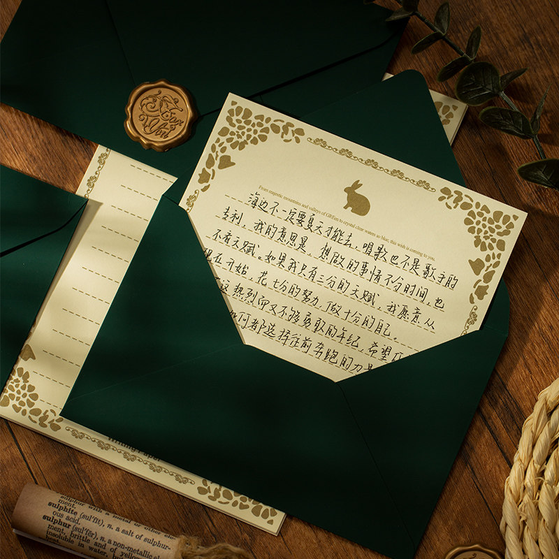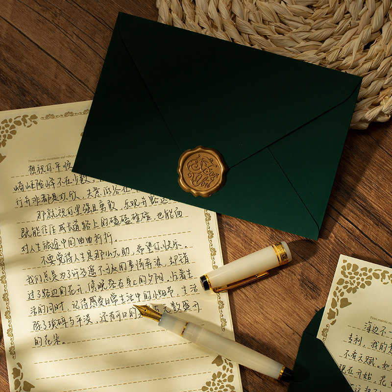 艾黎高级触感墨绿色信封信纸套装手写信纸浪漫情书特种纸邀请函封口火漆教师节信封贺卡烫金明信片高级感好看