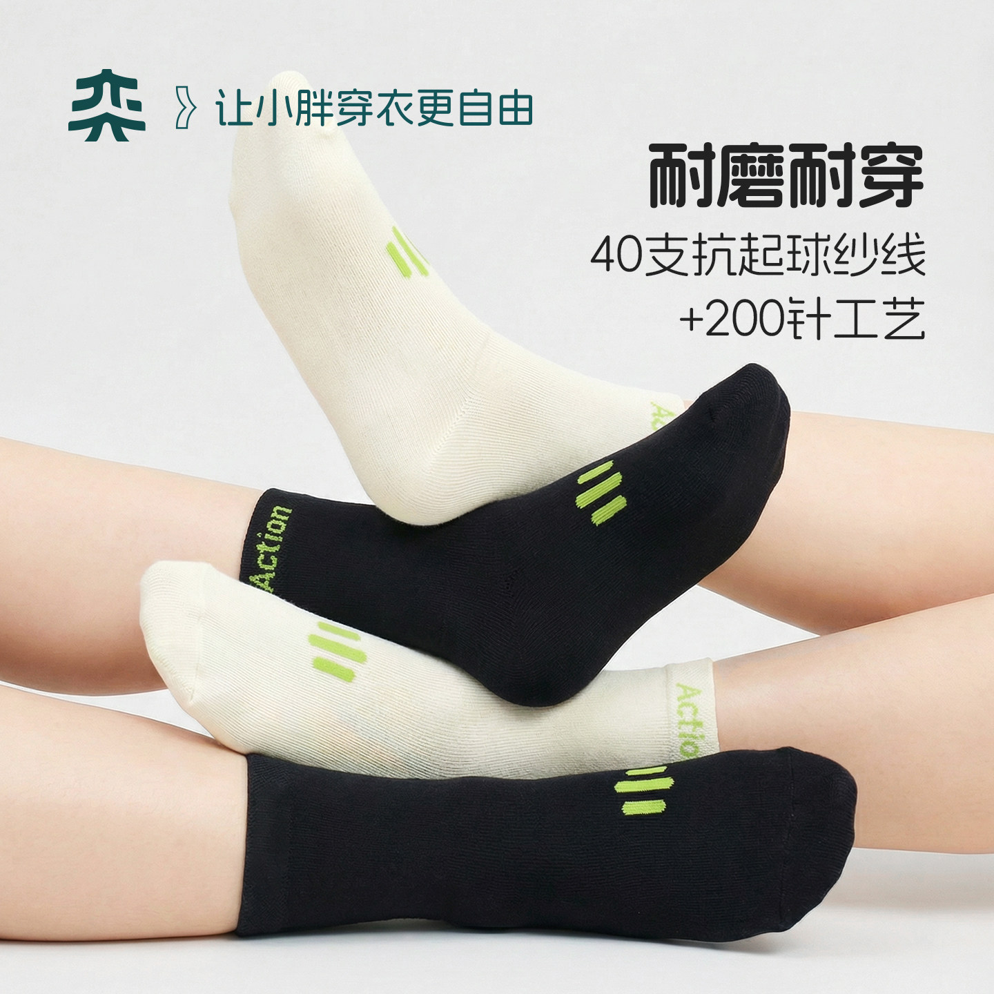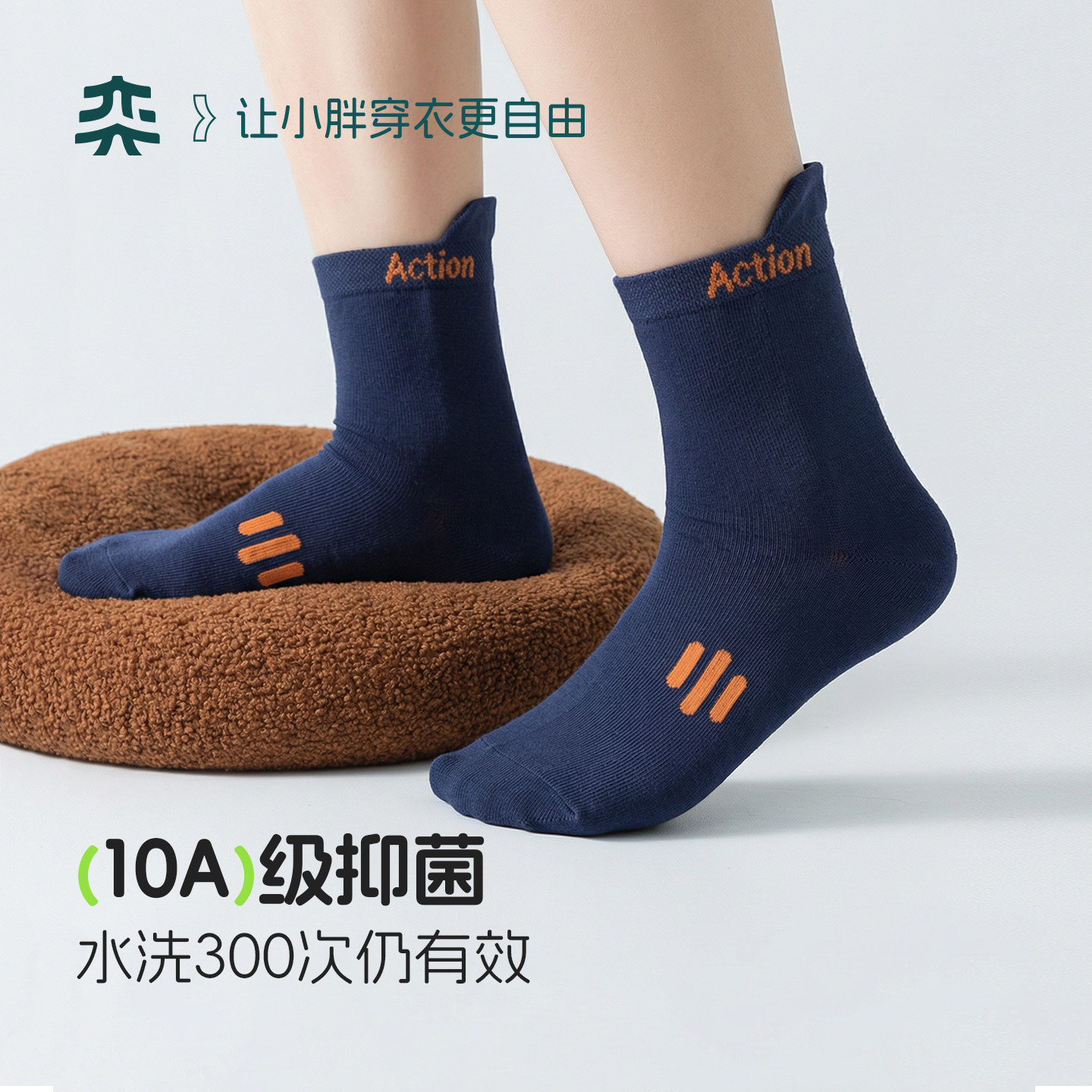 奕时代胖男童袜子10A抑菌中大童棉袜透气无骨袜男孩中筒袜大码袜