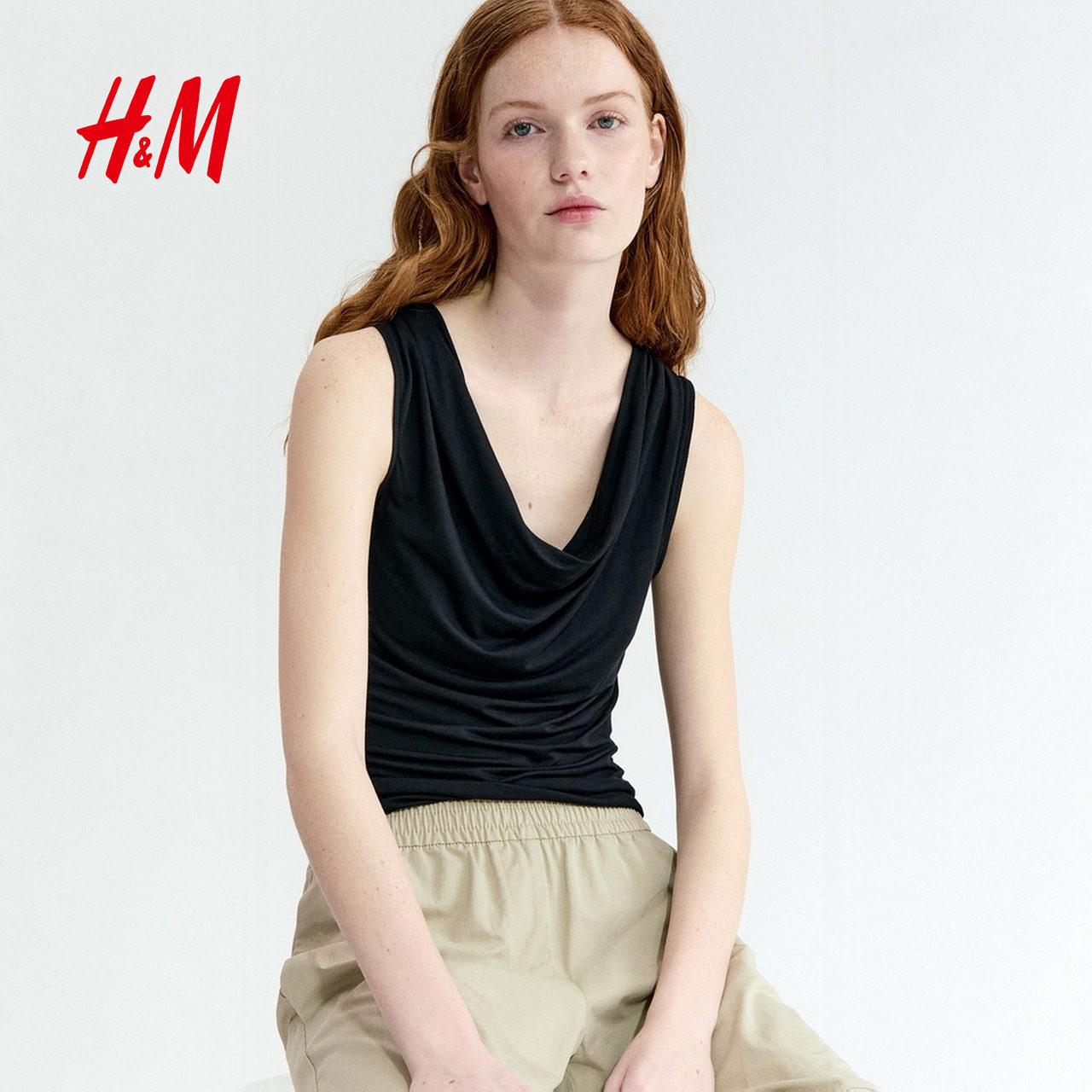 HM女装背心2026春季新款修身荡领无袖斗篷领针织上衣1316939