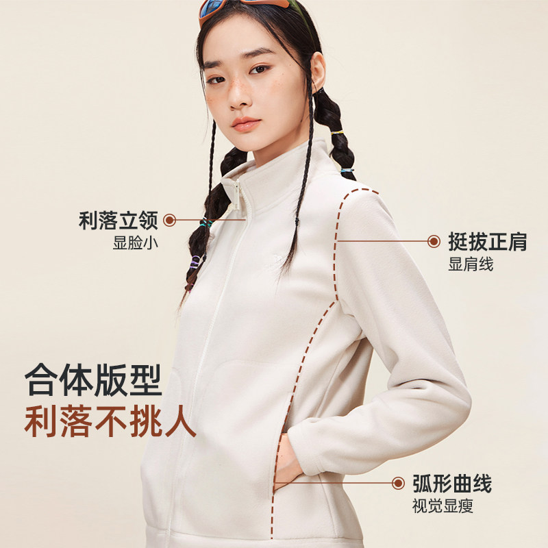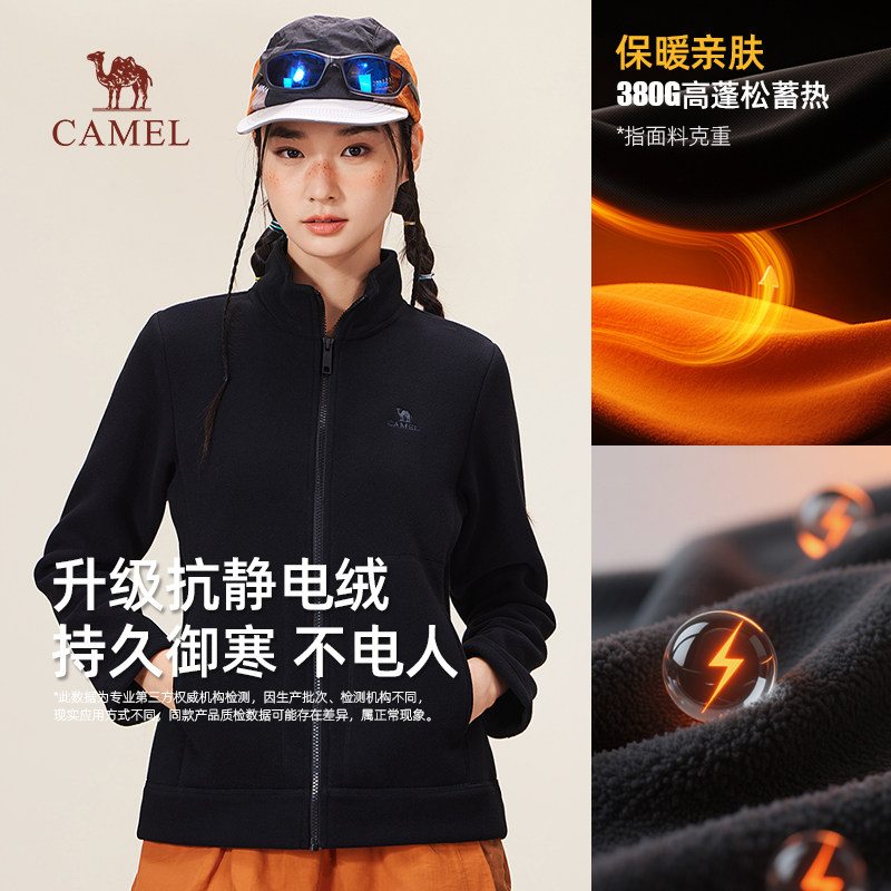骆驼女装立领抓绒外套2025秋冬新款抗静电防风保暖百搭休闲外套女