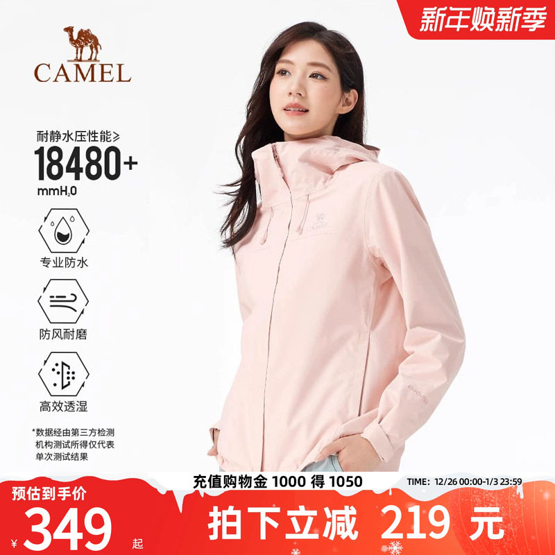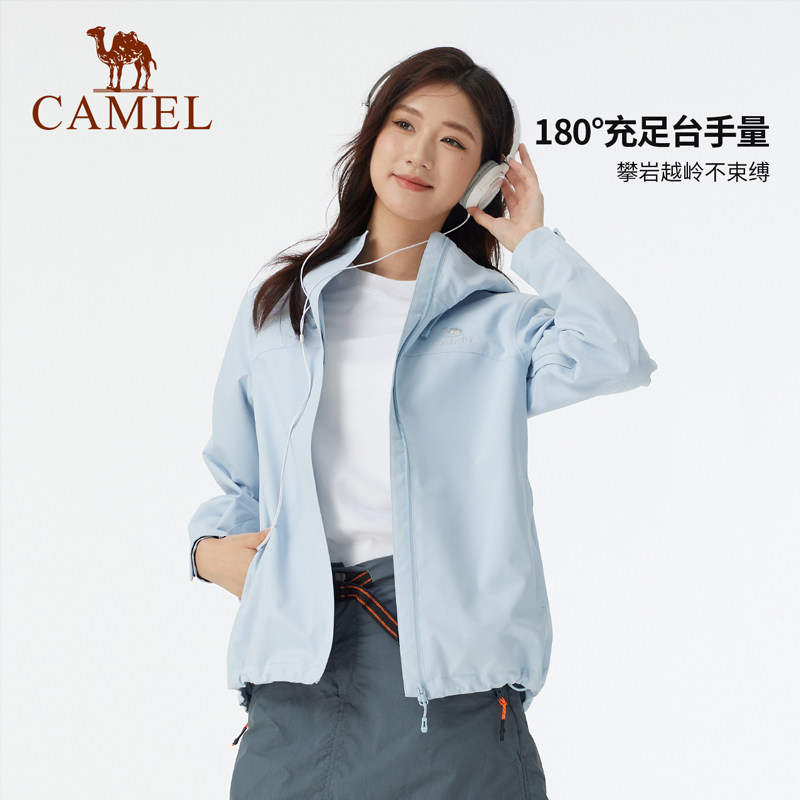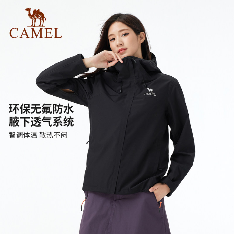 骆驼女装单层冲锋衣2025秋冬新款户外防风防水连帽立领男女款外套