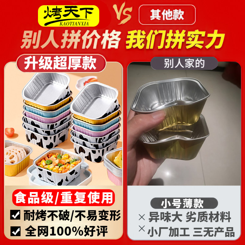 空气炸锅锡纸碗铝箔可重复家用烤箱蛋糕布丁烘焙模具小锡纸盒杯盘