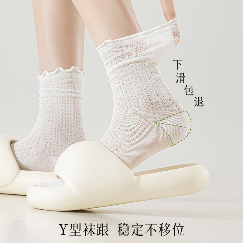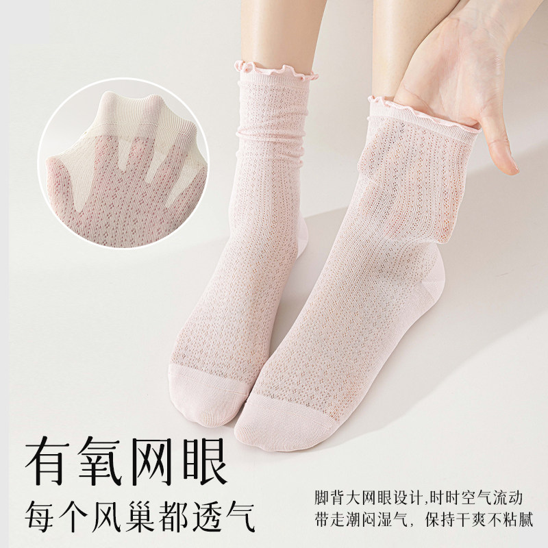 木耳边袜子女夏季薄款堆堆袜桑蚕丝网眼透气