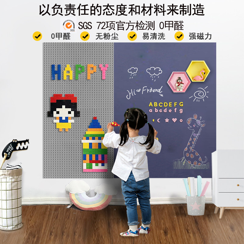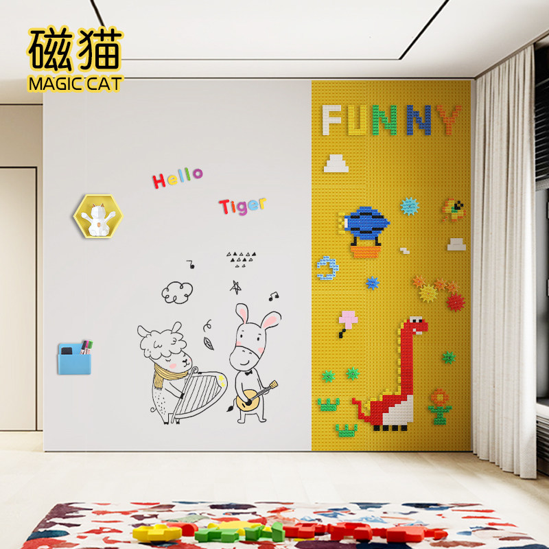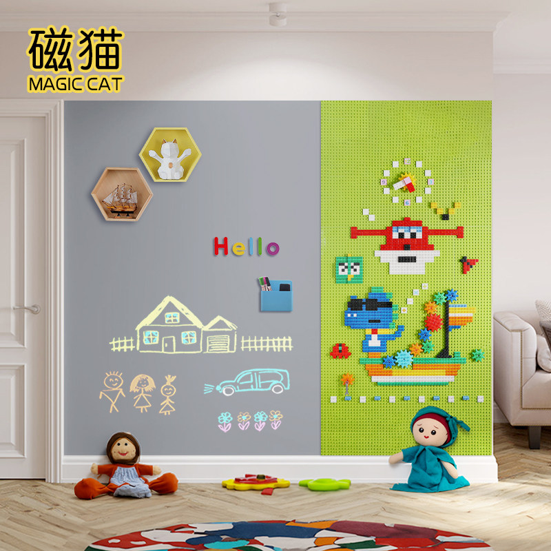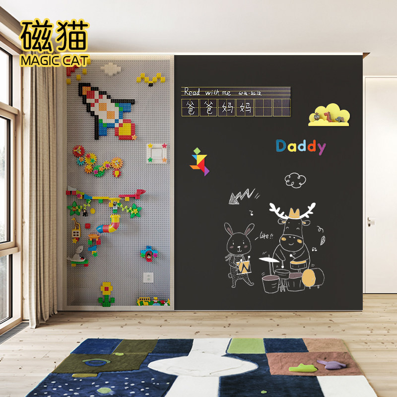 磁猫双层磁性黑板墙涂鸦积木墙面定制大颗粒底板上墙幼儿园儿童房家用益智拼装玩具磁吸自粘墙贴环保