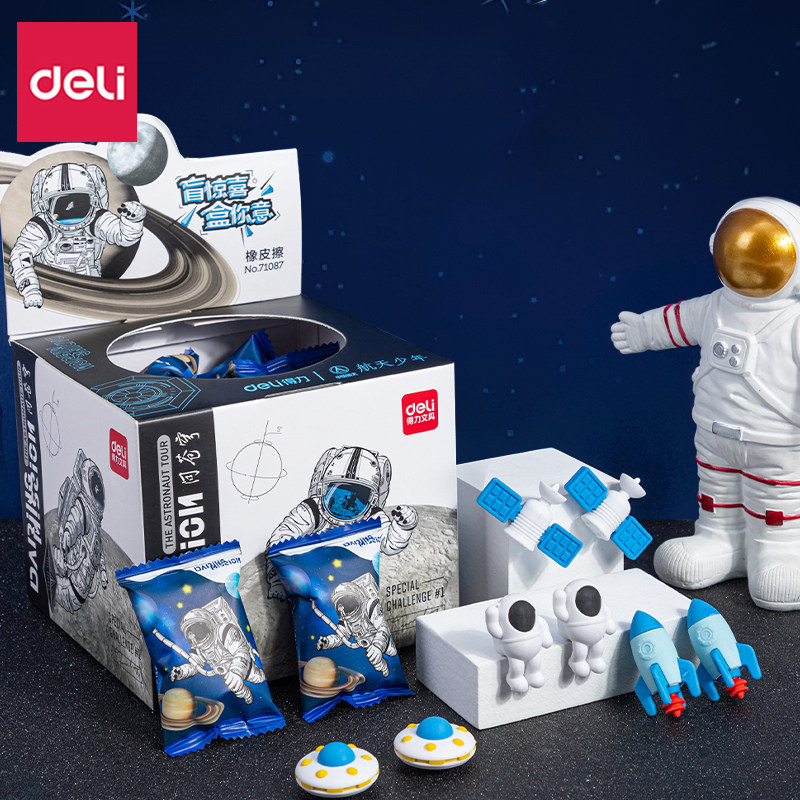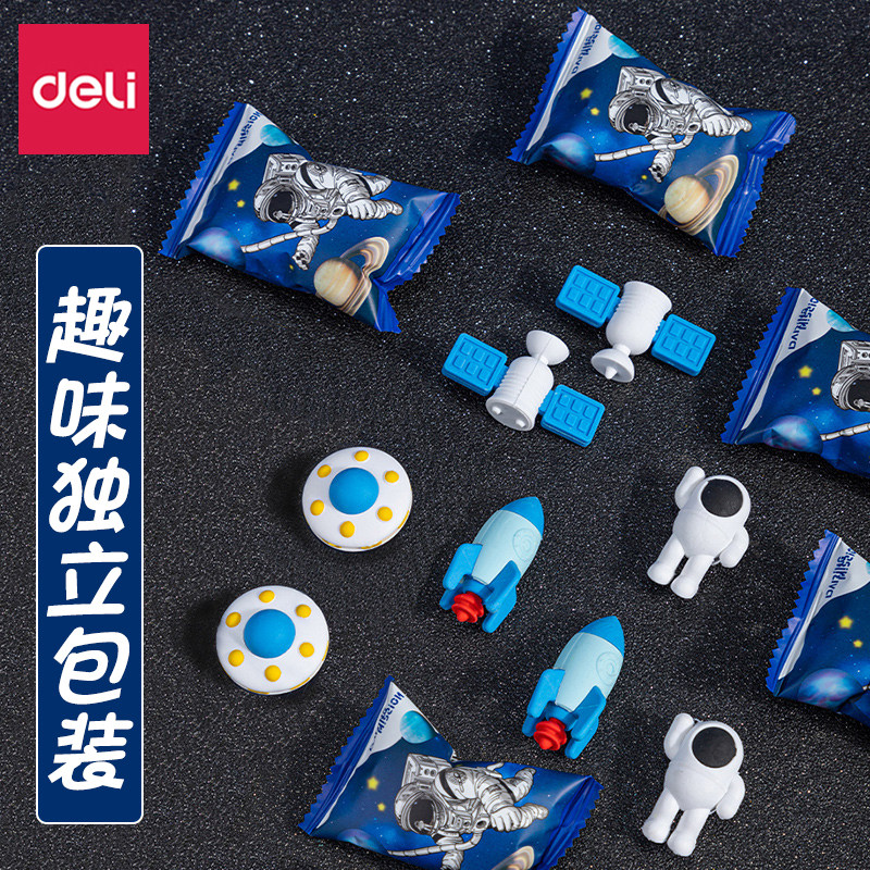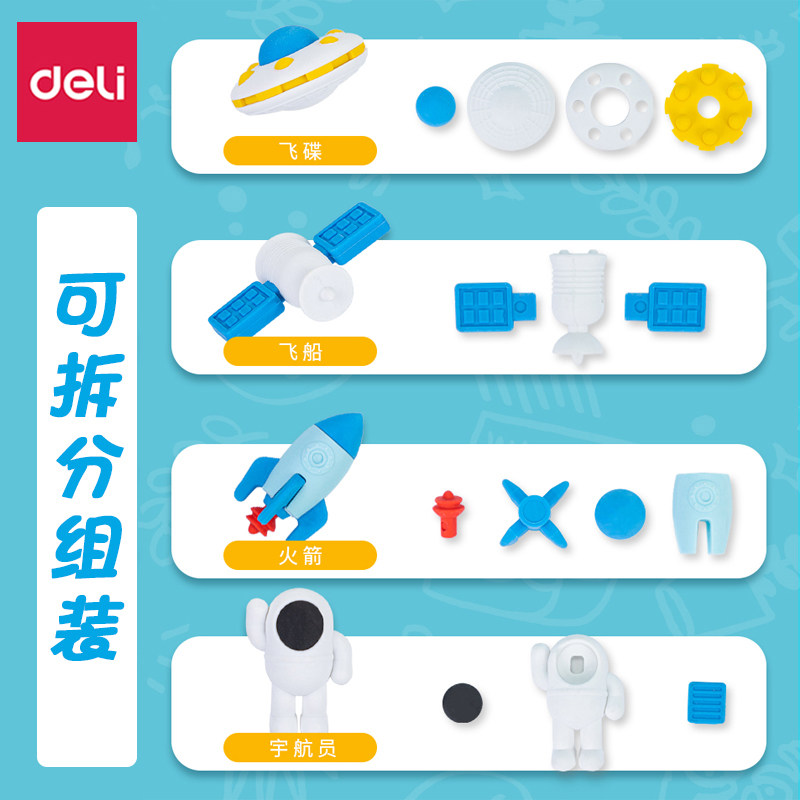 得力橡皮擦小学生专用宇航员彩色像皮擦不易留痕火箭飞船儿童少屑美术拼装幼儿园专用无毒趣味可拆分航天橡皮