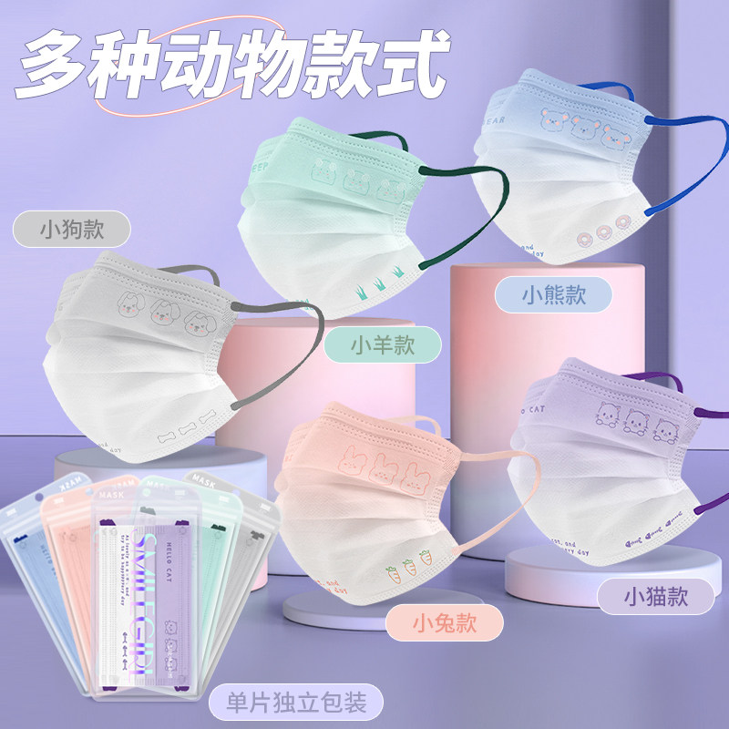 儿童KN95口罩4D立体学生卡通可爱小学生3到12岁四层防护独立包装