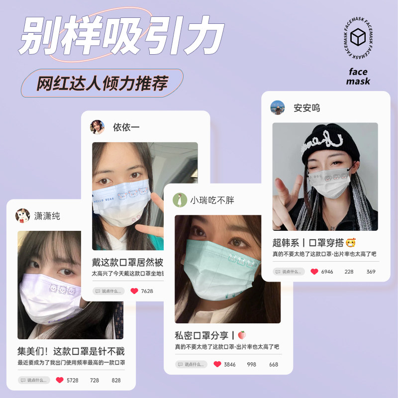 马卡龙口罩腮红渐变色2026新款时尚版透气印花ip联名网红高颜值女
