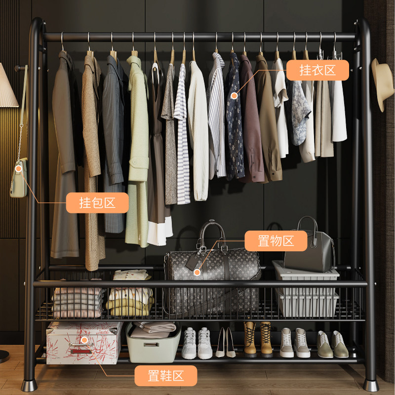 落地衣架卧室衣帽架挂衣架房间挂衣服架子家用晾衣架加粗加厚双杆