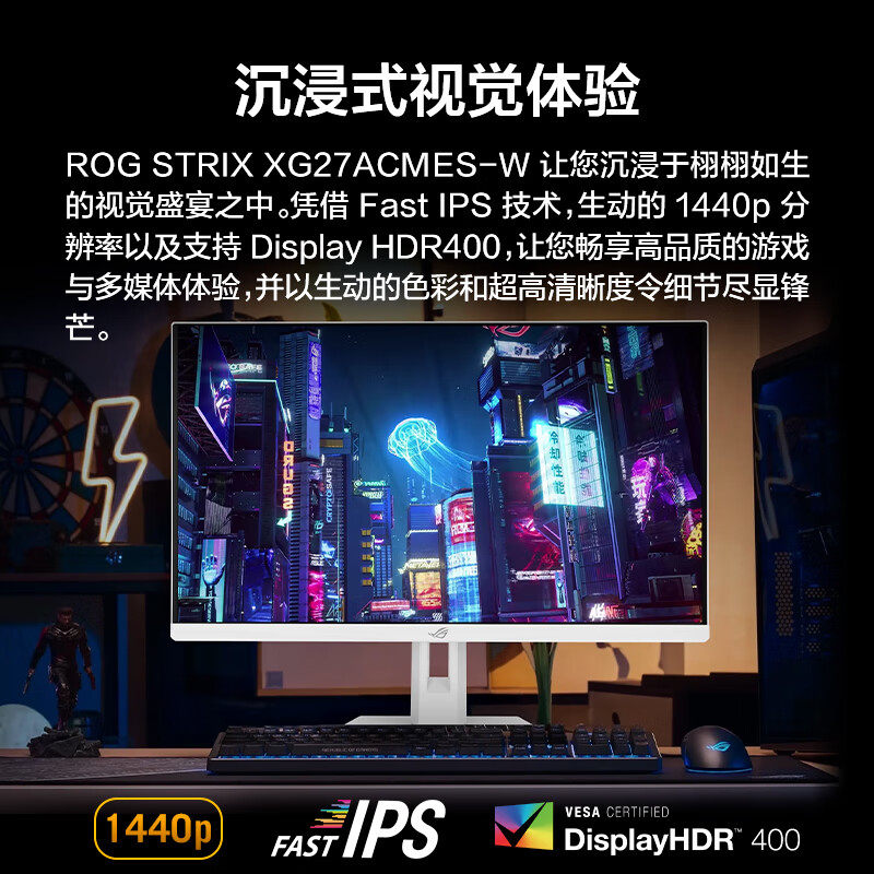 华硕ROG绝杀27二代 27英寸2K255Hz电竞台式电脑显示器XG27ACMES-W