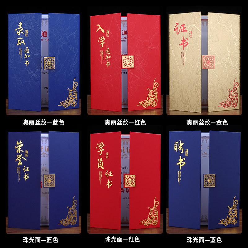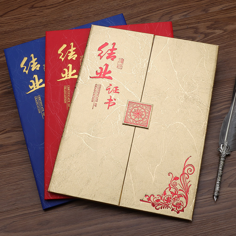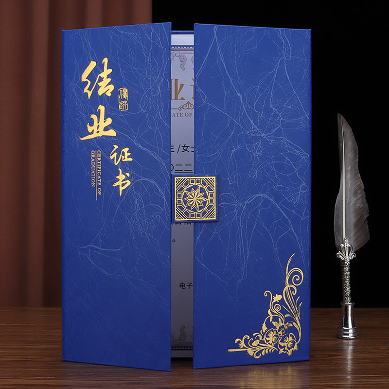 结业证书封皮定做上岗培训证书外壳进修岗位职业技能等级封面烫金定制三折蓝色荣誉证a4结题结项会员证学员证