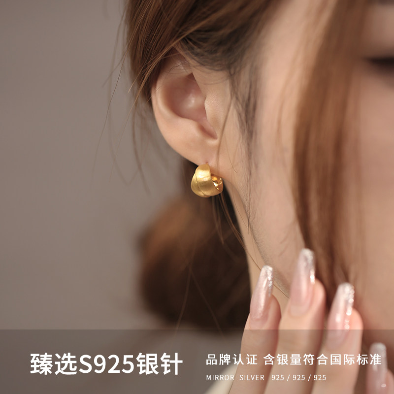 999纯银耳针许妍同款大圆圈素圈耳环宽耳钉耳饰2025新款爆款耳圈