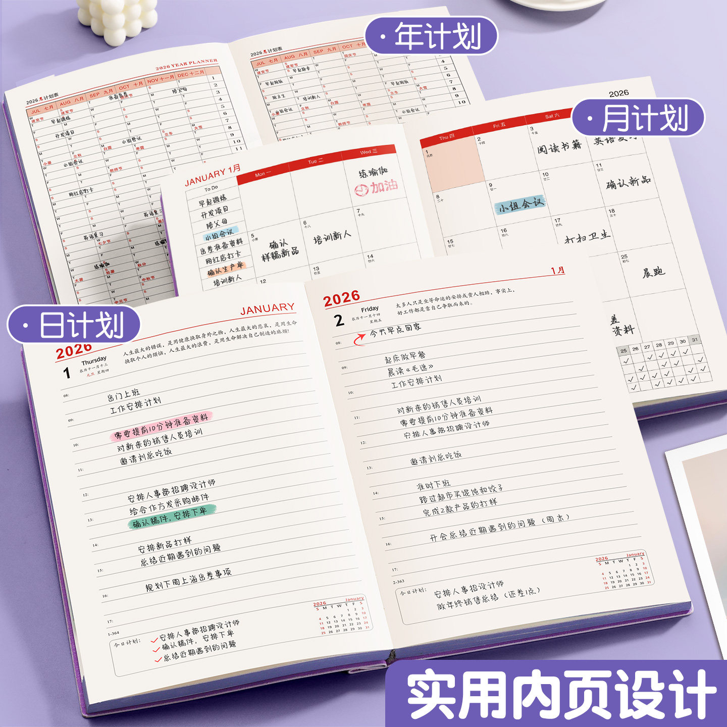 2026年日程本新款每日计划本一日一页工作日历记事本效率手册a5私人简约商务自律打卡时间管理手帐笔记本定制