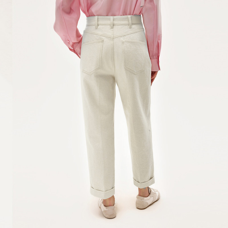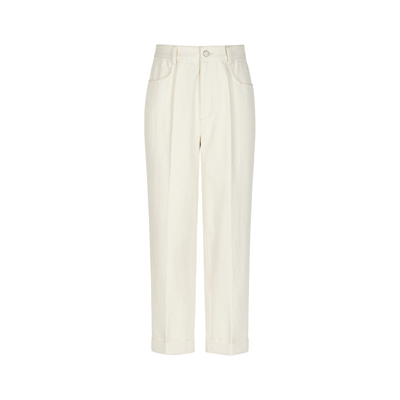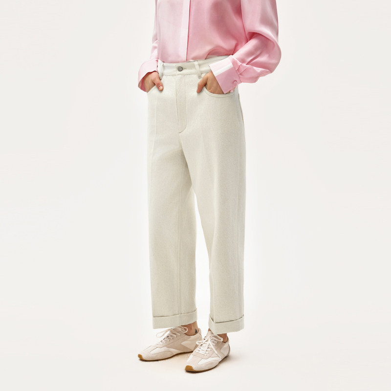 LESS春高腰复古直筒白色九分显瘦通勤利落棉麻裤2O2E10440