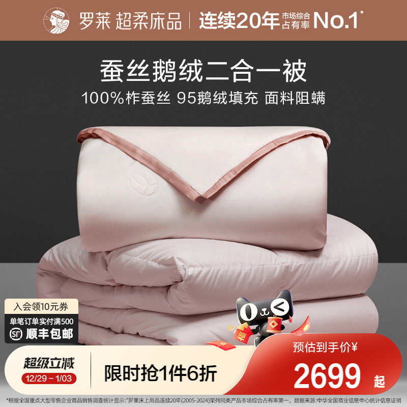 罗莱家纺被子被芯蚕丝95白鹅绒二合一被子母被蓬松四季通用保暖