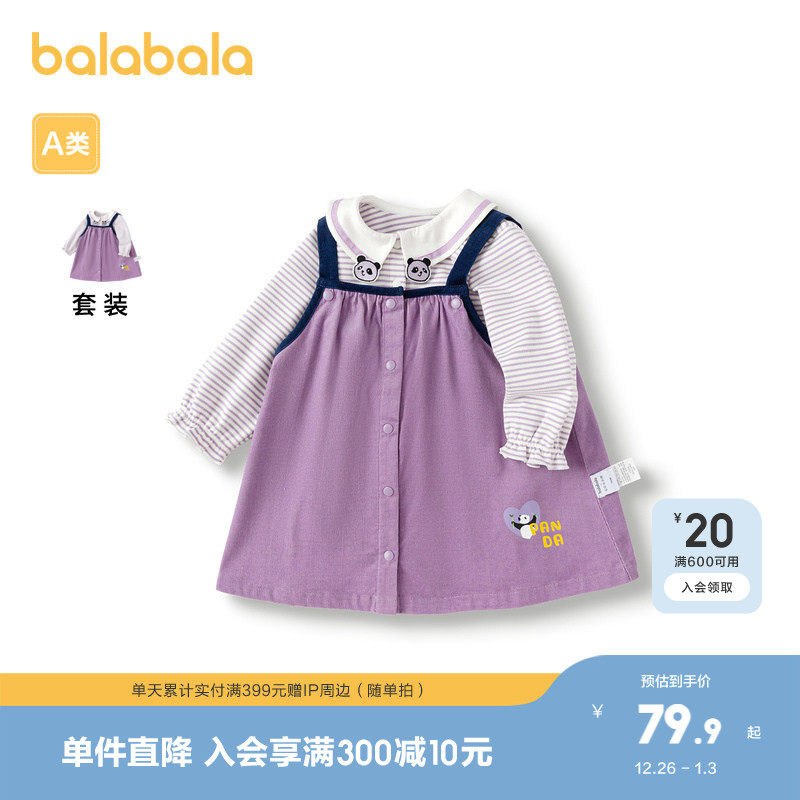 巴拉巴拉宝宝秋装女童长袖套装儿童衣服背带裙两件套可爱活力甜美