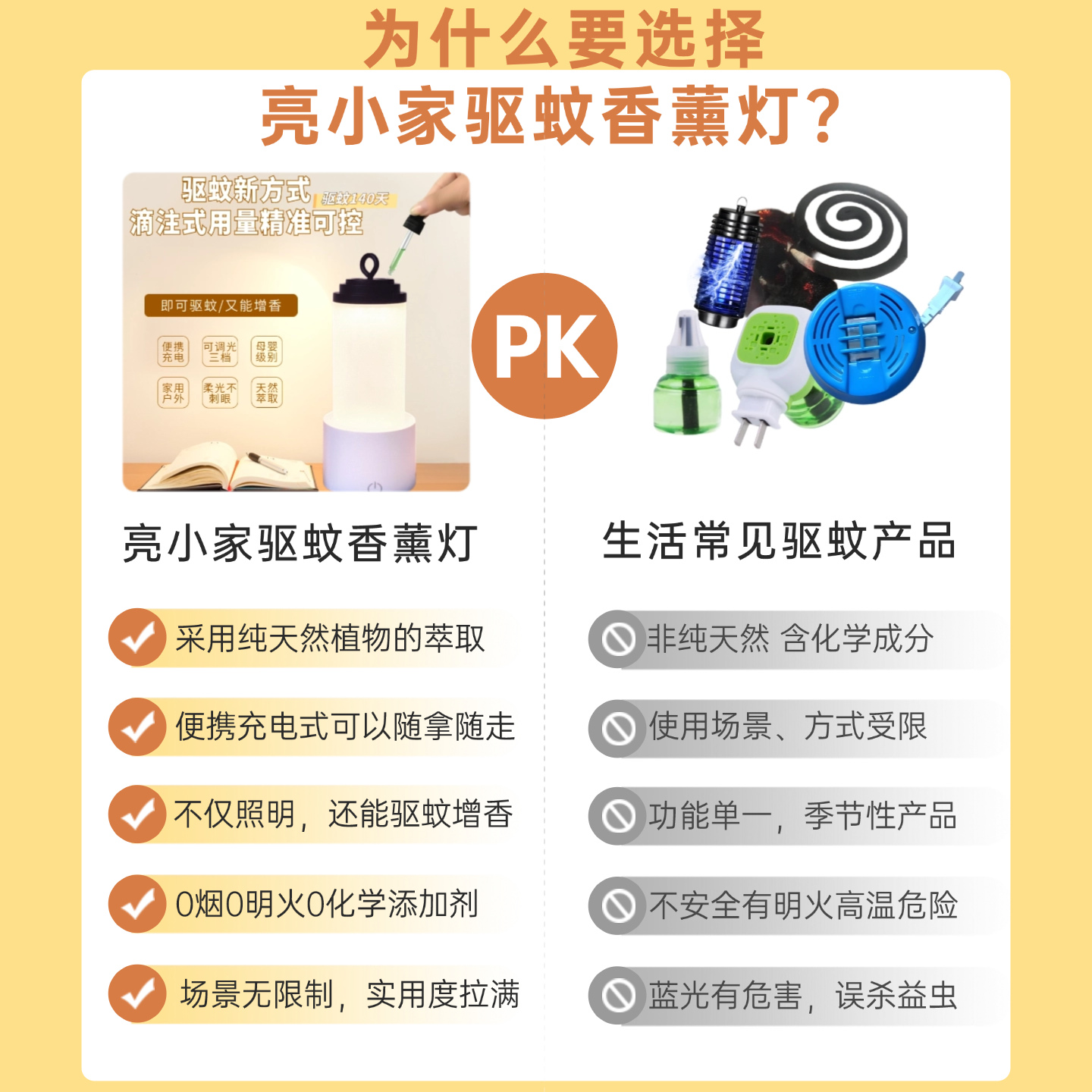 亮小家USB充电式驱蚊灯香薰灯卧室家用户外母婴级多功能小夜灯