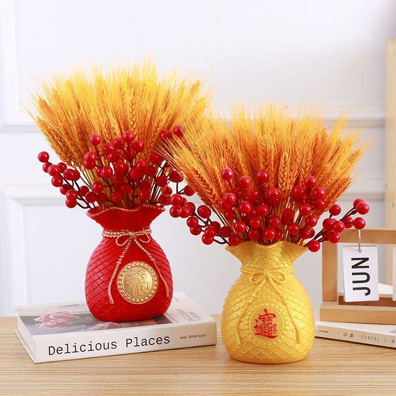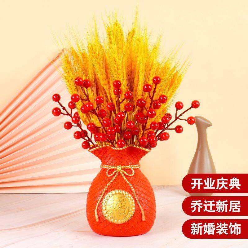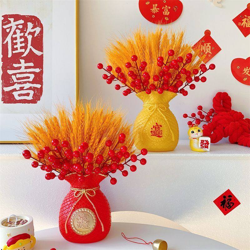 2025新年装饰花黄金麦穗摆件仿真假花红果客厅干花束乔迁开业摆设