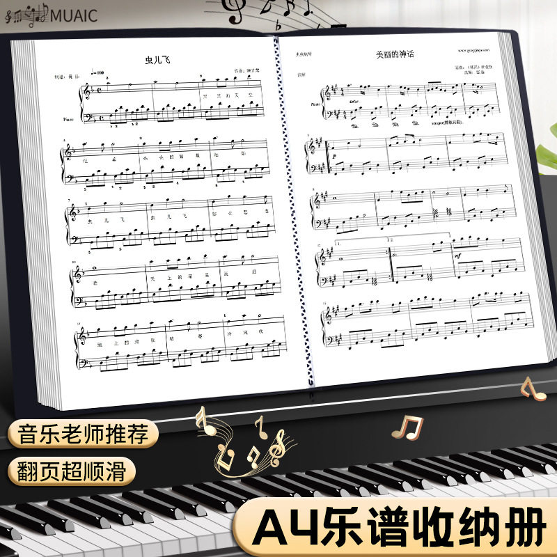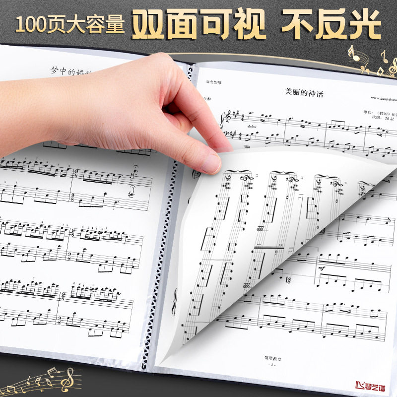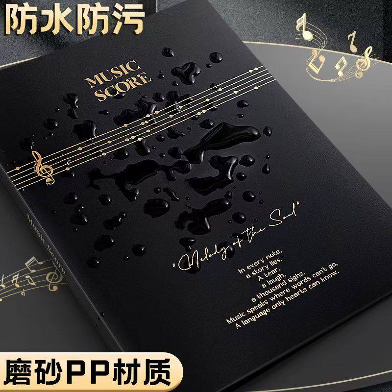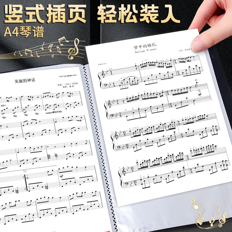 谱夹黑色a4乐谱夹竖式插页式不反光资料册高颜值收纳册学生琴谱夹钢琴专用夹子透明插页音乐唱歌谱曲谱文件夹