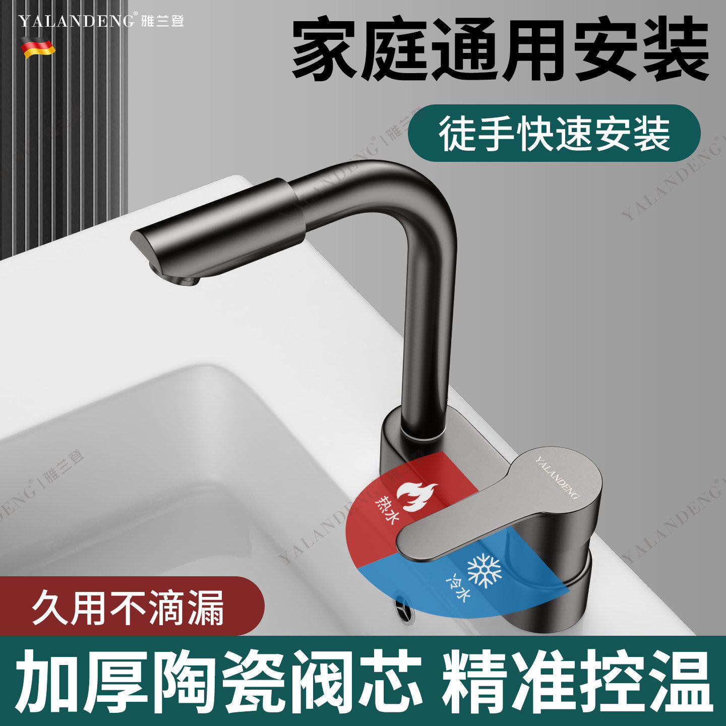 包安装洗脸盆双孔水龙头冷热混合阀浴室洗手盆洗漱台面盆家用全铜
