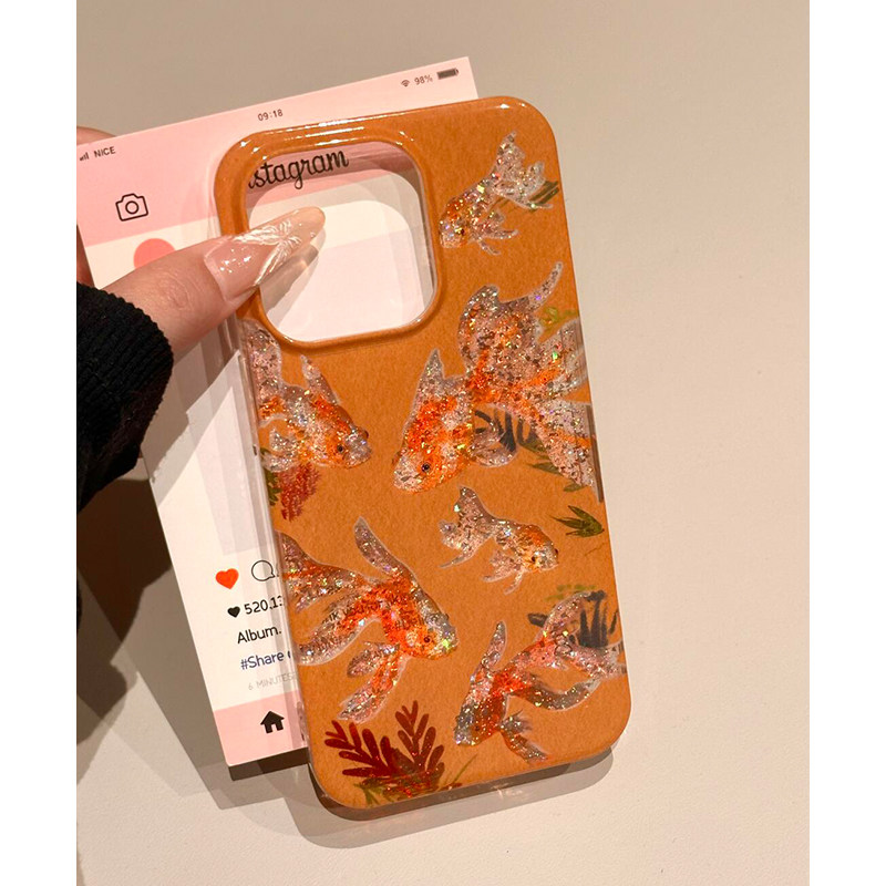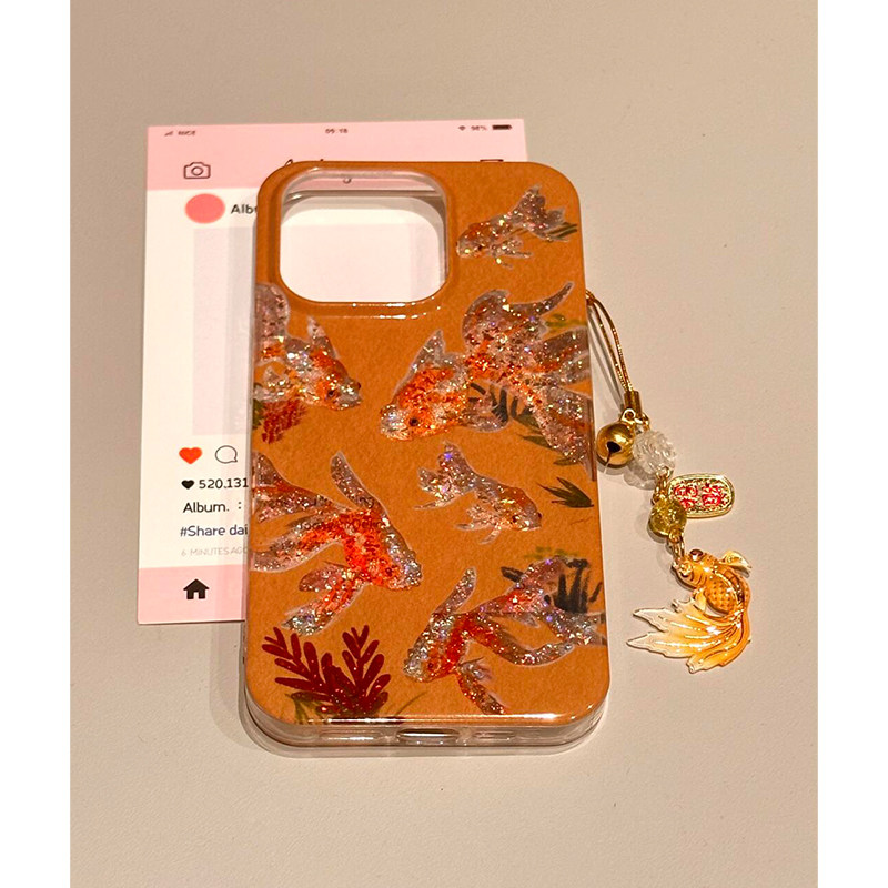 国风个性好运镂空金鱼挂件适用苹果16promax手机壳iPhone15女新款14小众16高级感13时尚15Pro防摔14pro保护套
