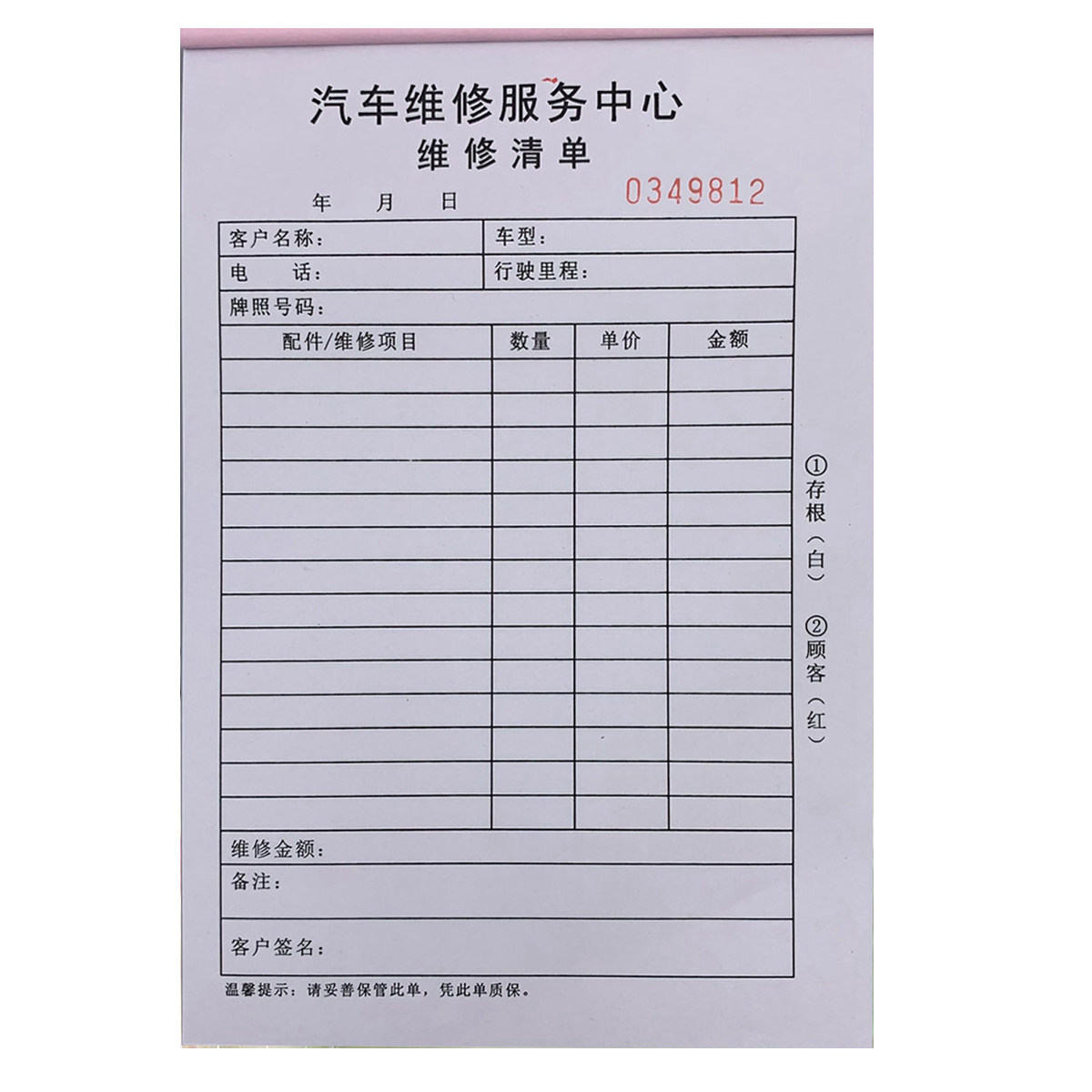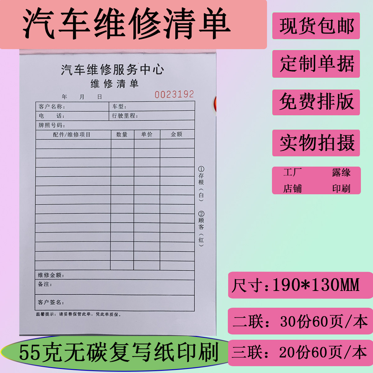 包邮汽车服务维修清单结算单保养记录表检修单修理单报价单可定做