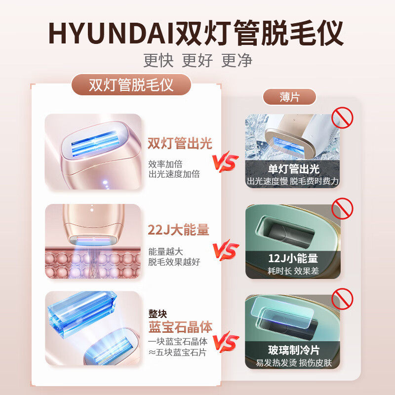 HYUNDAI现代冰点脱毛仪蓝宝石大能量全身无痛腿毛腋下刮毛神器