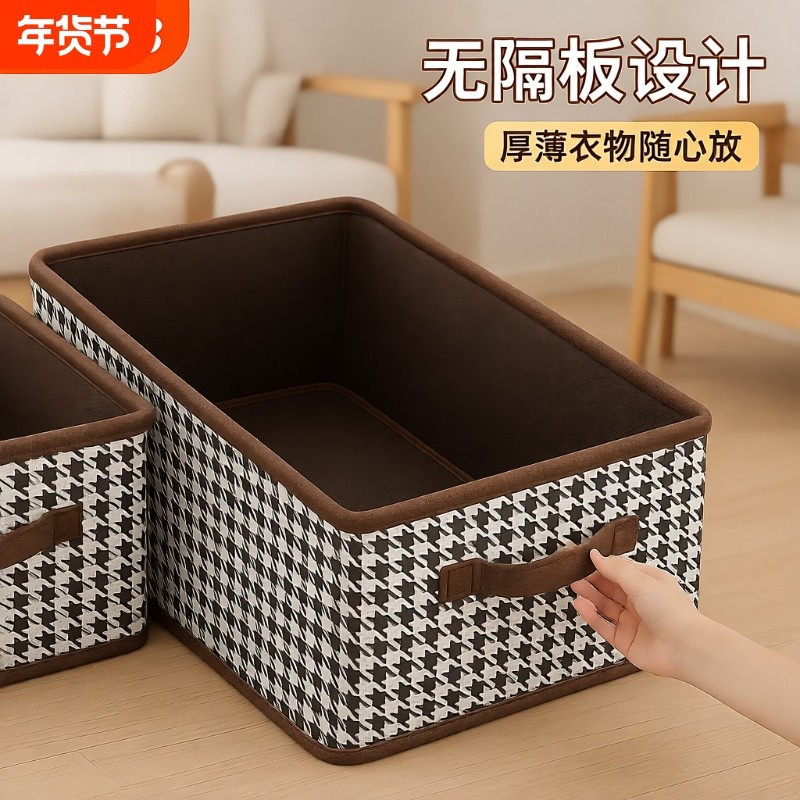 衣服收纳箱千鸟格家用衣柜分层整理收纳神器放衣物布艺折叠收纳筐
