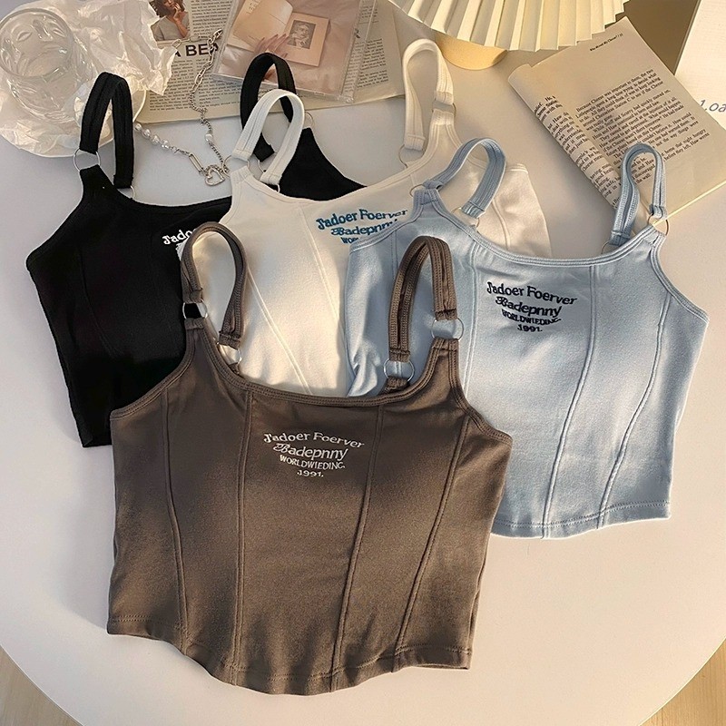 半练纽扣带胸垫夏季背心白色吊带女外穿内搭打底上衣免穿内衣