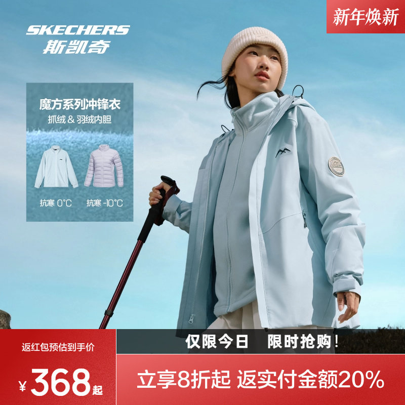 斯凯奇魔方冲锋衣冬季男女三合一保暖羽绒服户外抓绒内胆防水外套