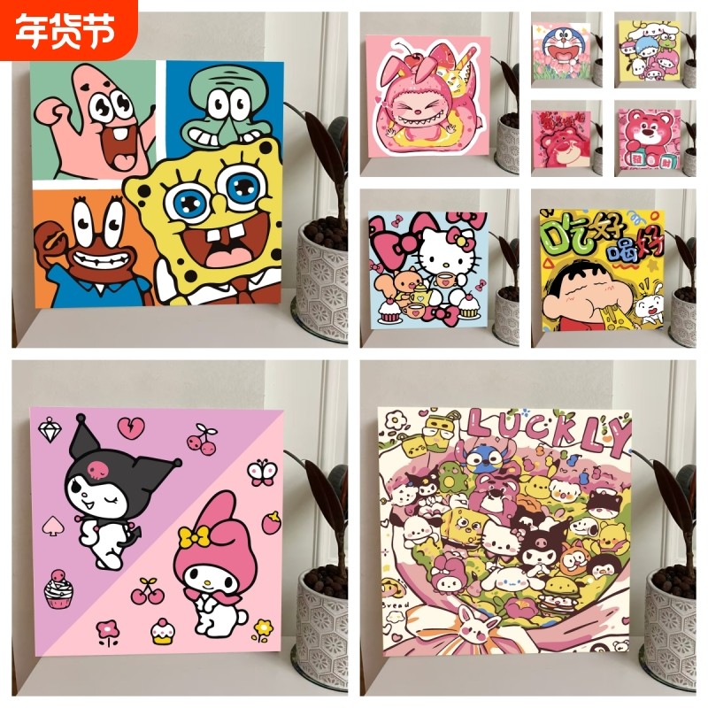 卡通儿童数字油画diy手工填色涂色画画2025年新款手绘颜料绘画