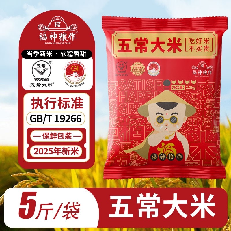 福神粮作五常大米5斤新米东北大米粳米优质一等稻香鹰标直发长粒