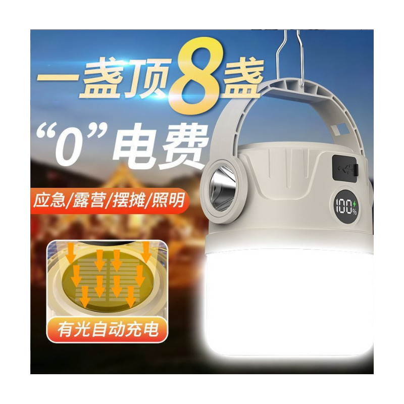 太阳能充电高亮大电量照明应急灯户外野营露营帐篷灯地摊灯长续航