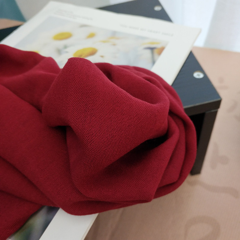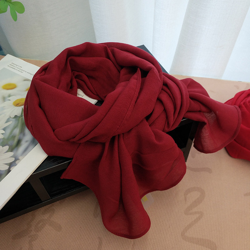 酒红色棉麻围巾女秋冬2025新款护颈百搭围脖丝巾长条纯色装饰领巾