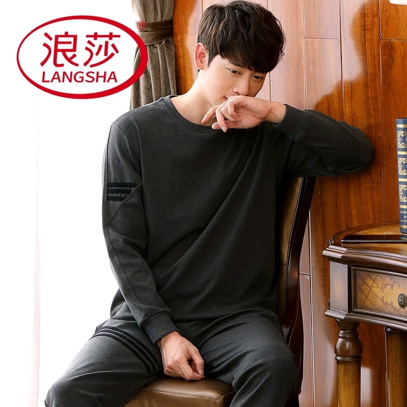 浪莎睡衣男春秋季棉质长袖长裤青少年大码可外穿韩式家居服两件套