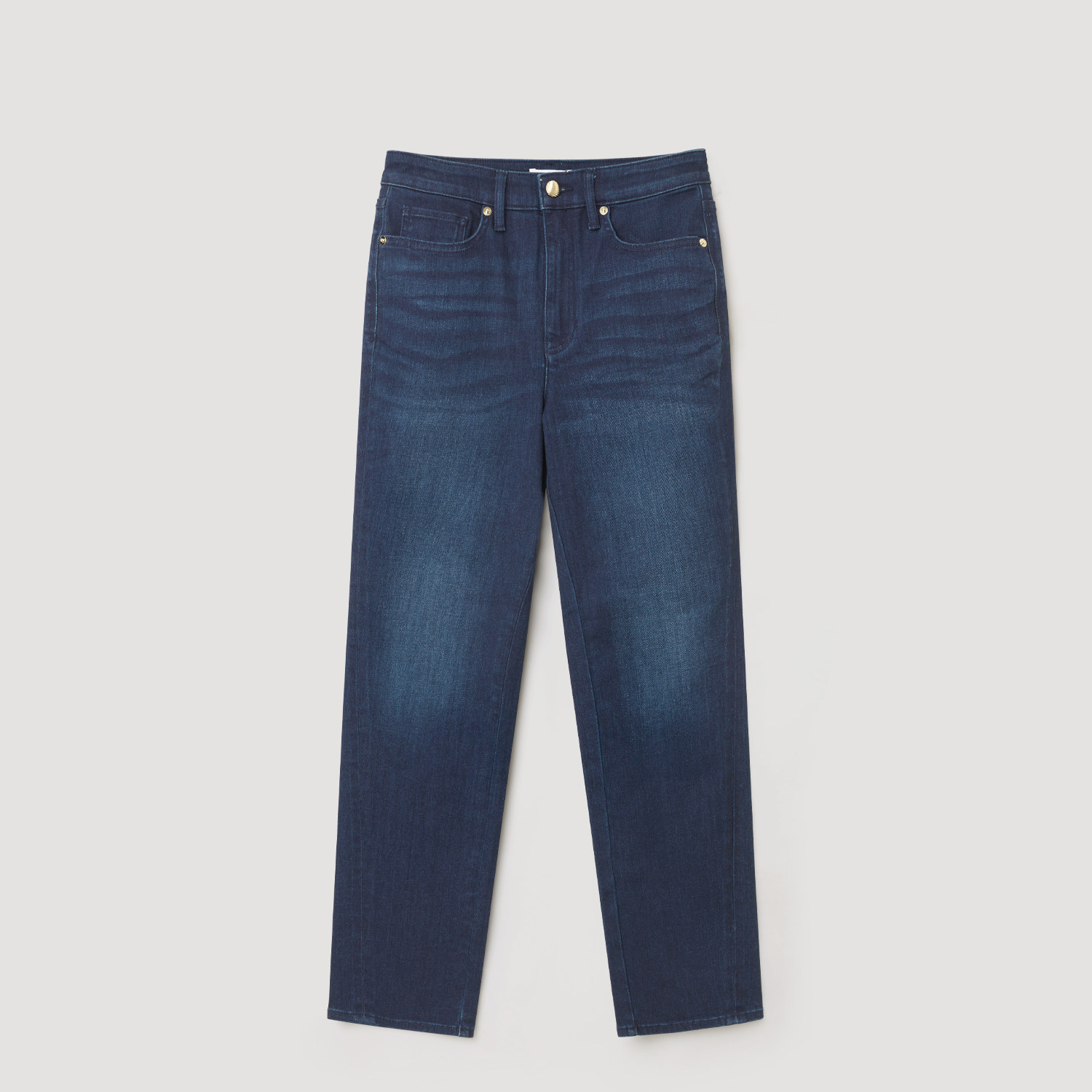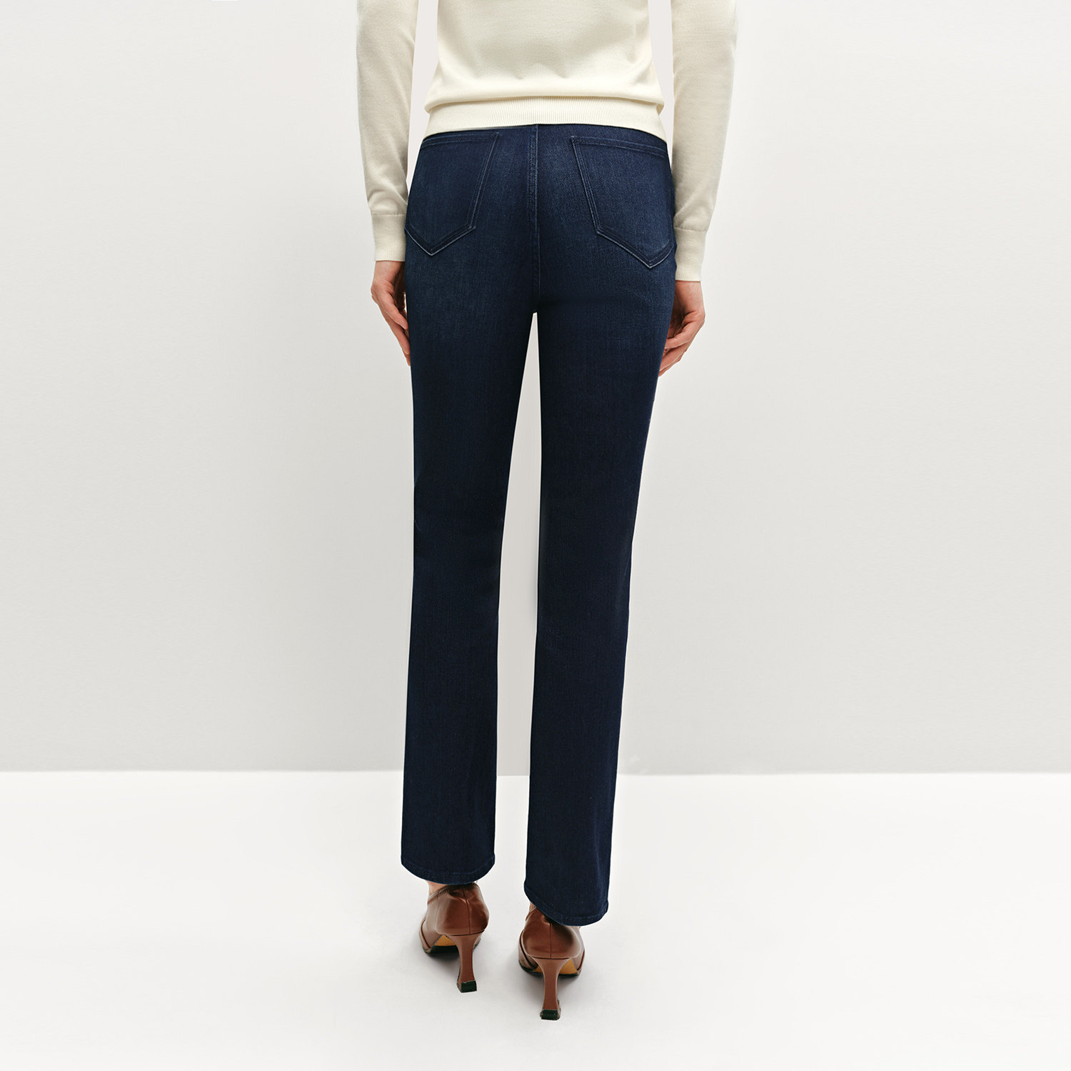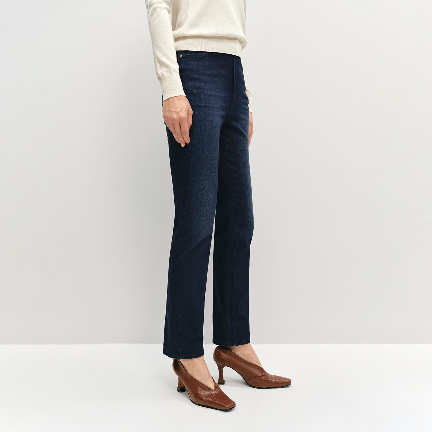 艾恩晟 25年秋冬新款牛仔裤女微喇叭 深蓝色弹性窄版修身显瘦