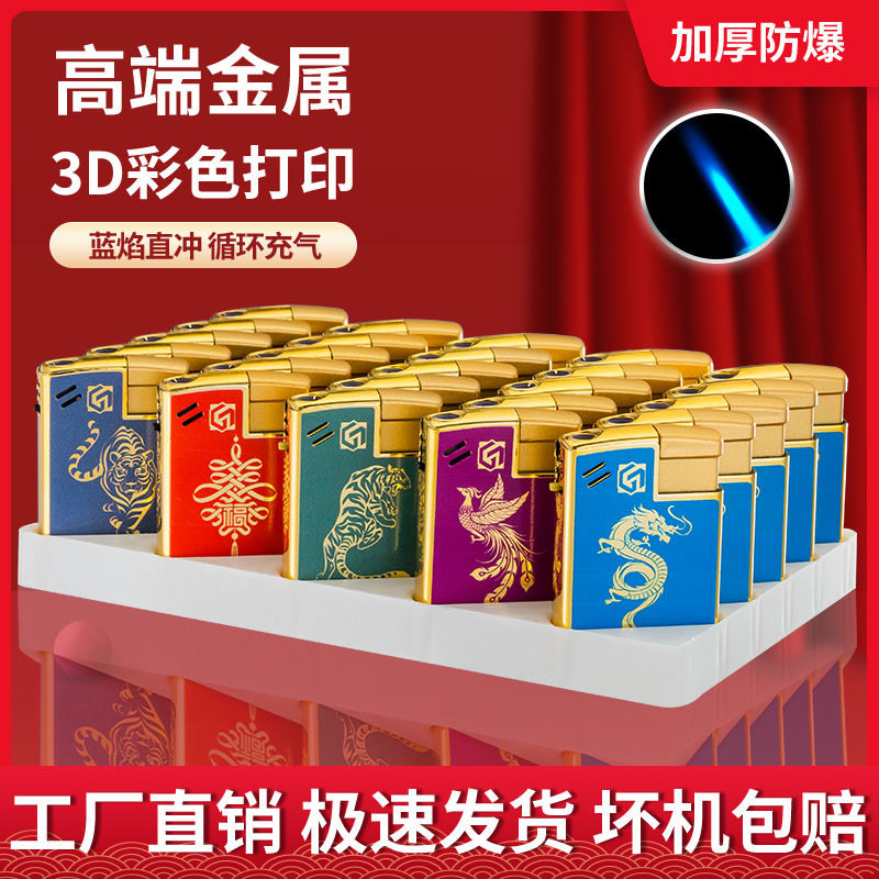 金属防风红福蓝焰直冲加厚防爆耐用打火机个人家用商超批发火机