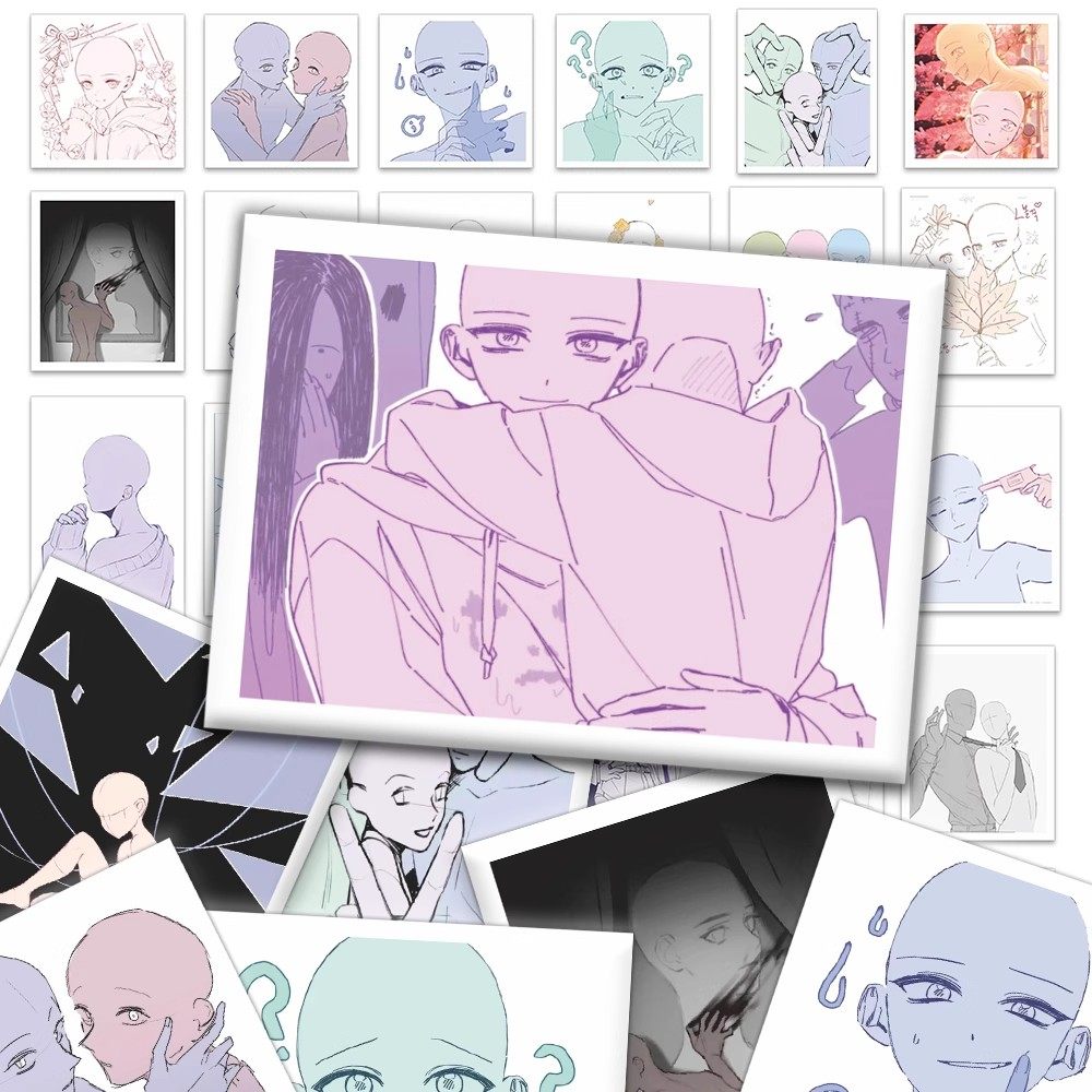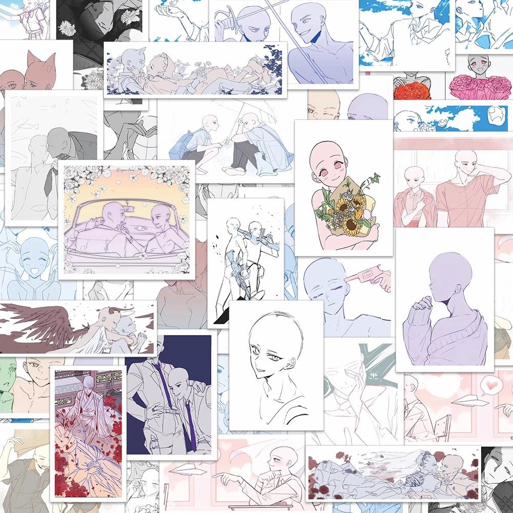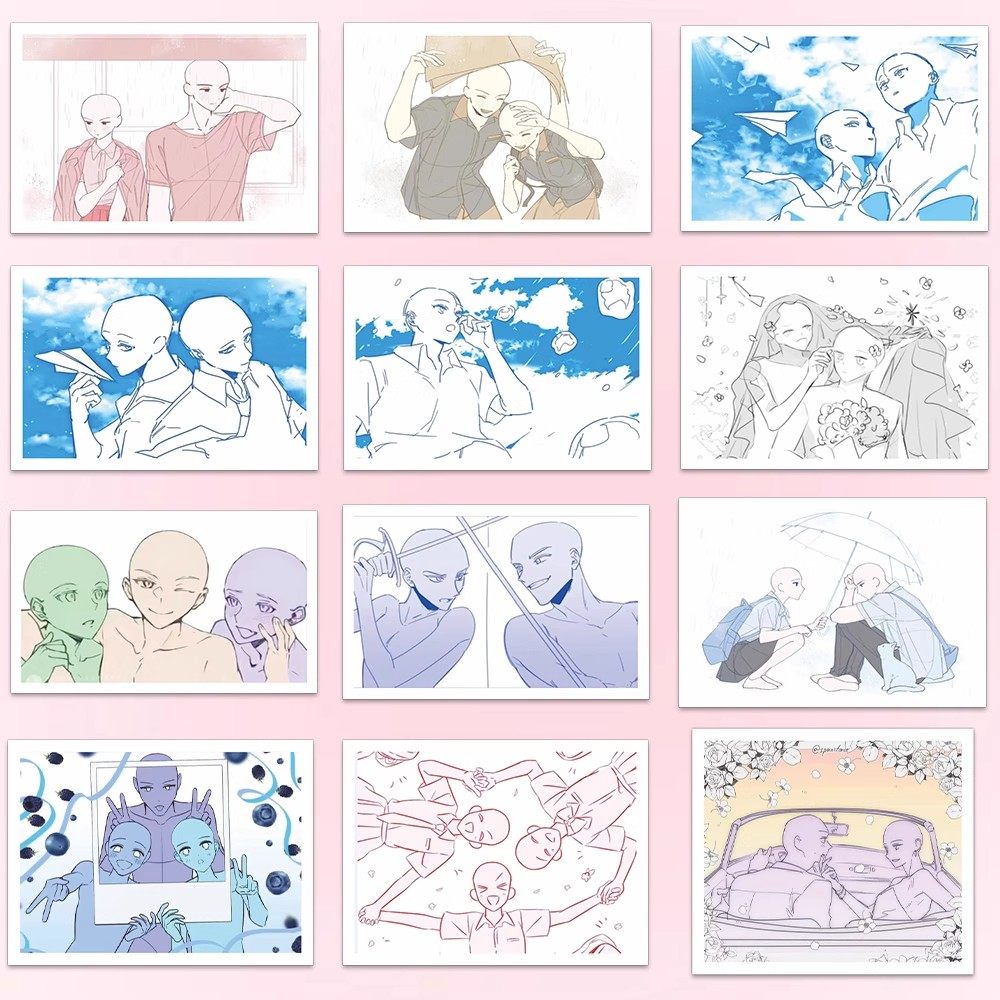 双人OC绘画模板贴纸双人速写参考素材自粘贴DIY装饰笔记手机贴画