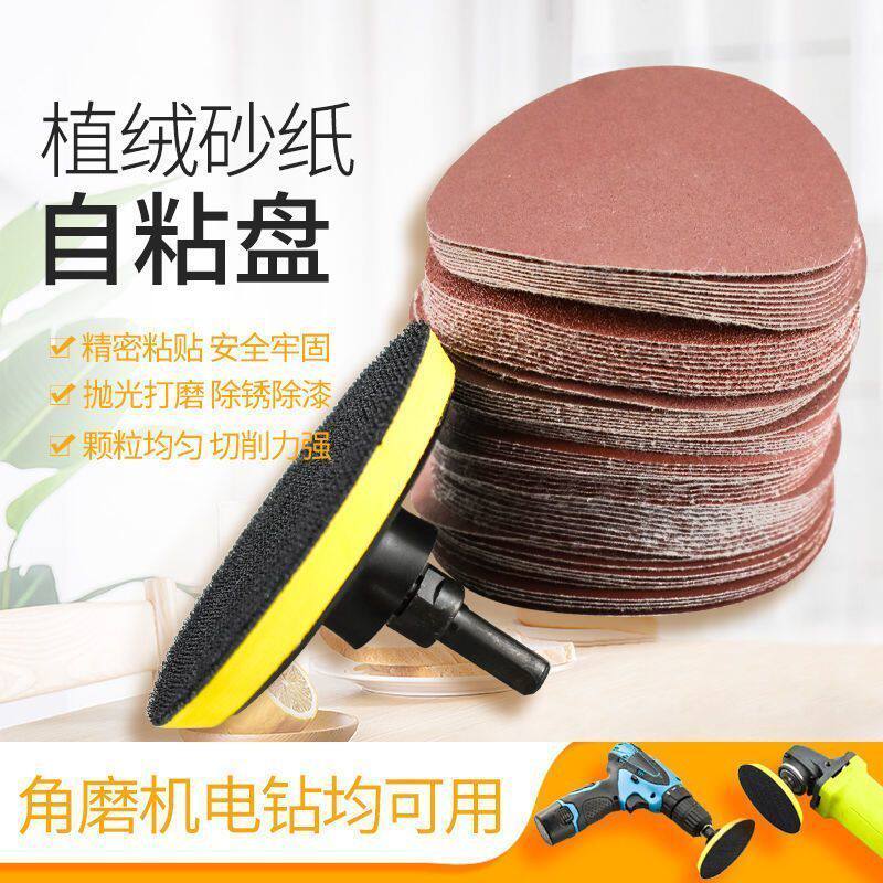 4寸圆形植绒砂纸片手电钻角磨机抛光打磨自粘式木工5寸磨片100mm