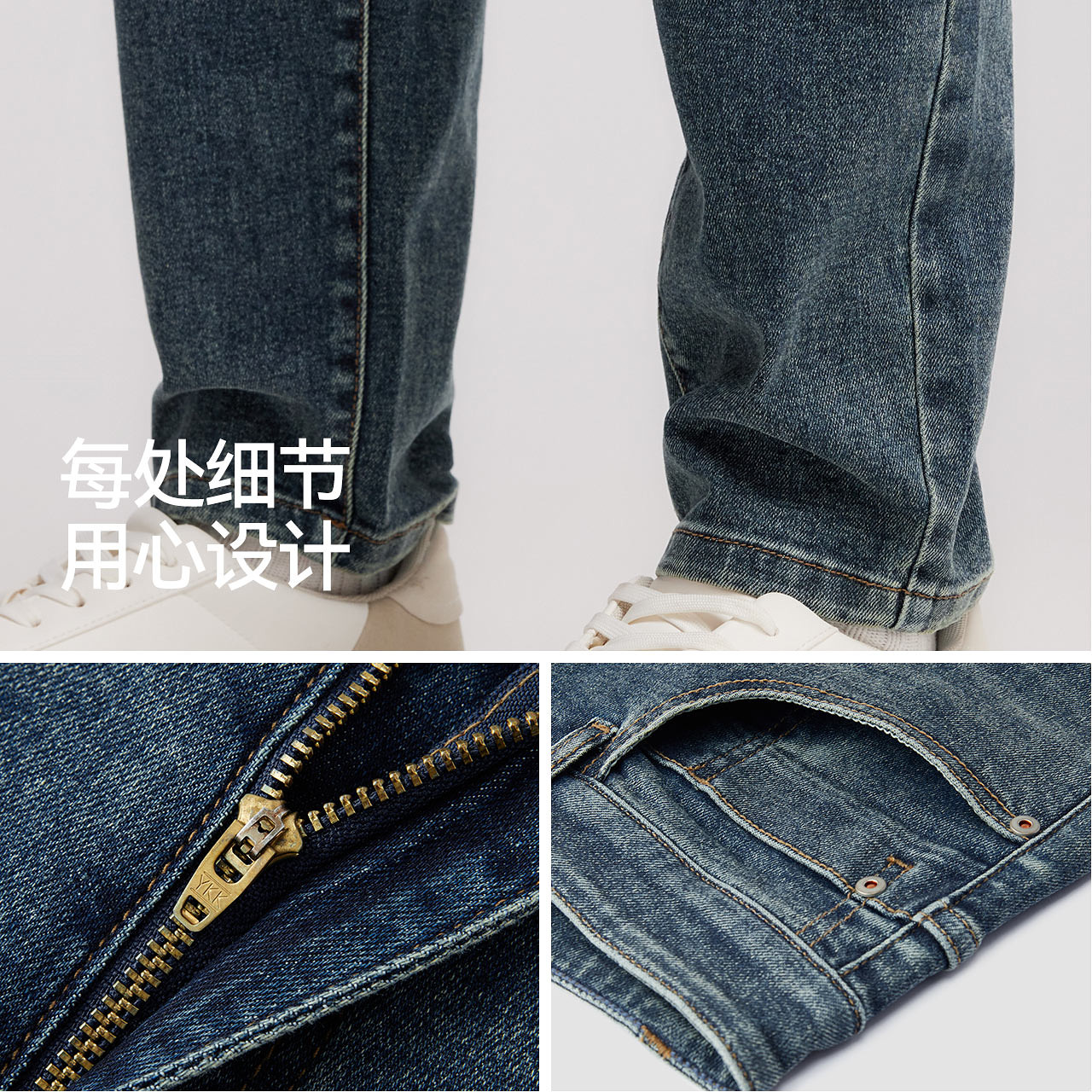 森马牛仔裤男猫须做旧复古宽松直筒裤2025秋冬新款长裤子经典质感