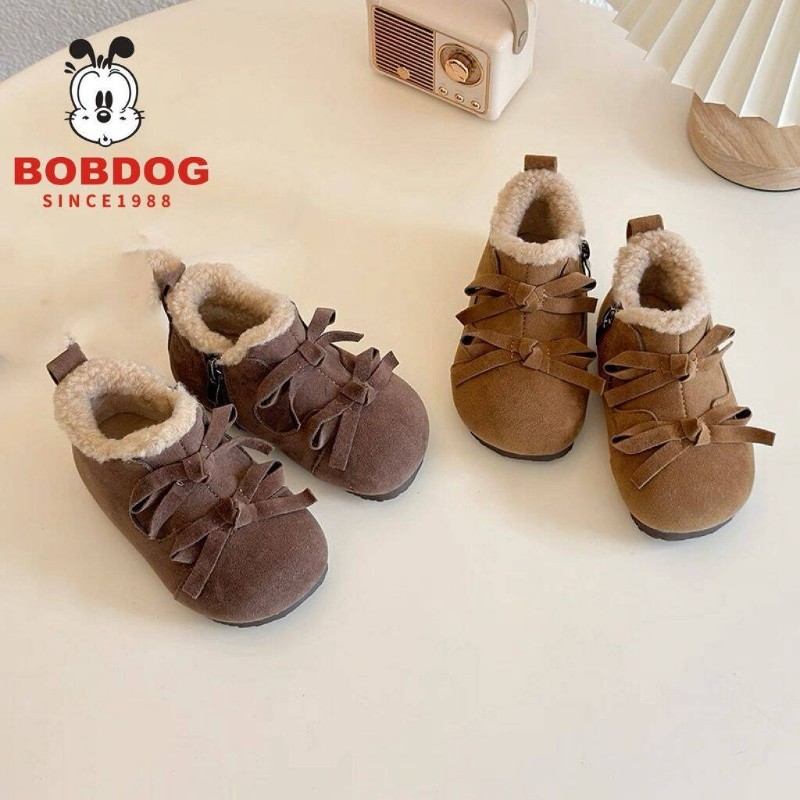 巴布豆女童棉鞋2025秋冬儿童加绒女宝毛毛鞋冬季女孩毛绒冬鞋防滑