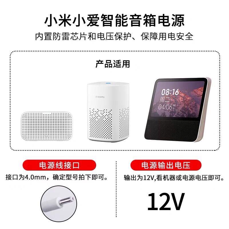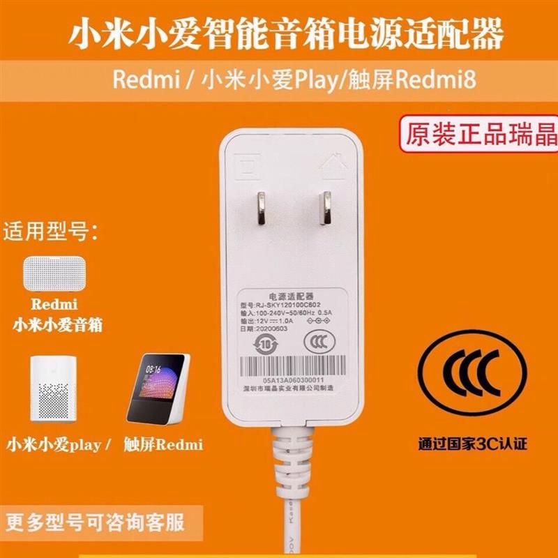 适用于小米小爱同学Play/Redmi带触屏音箱8充电源适配器线插头12V1A