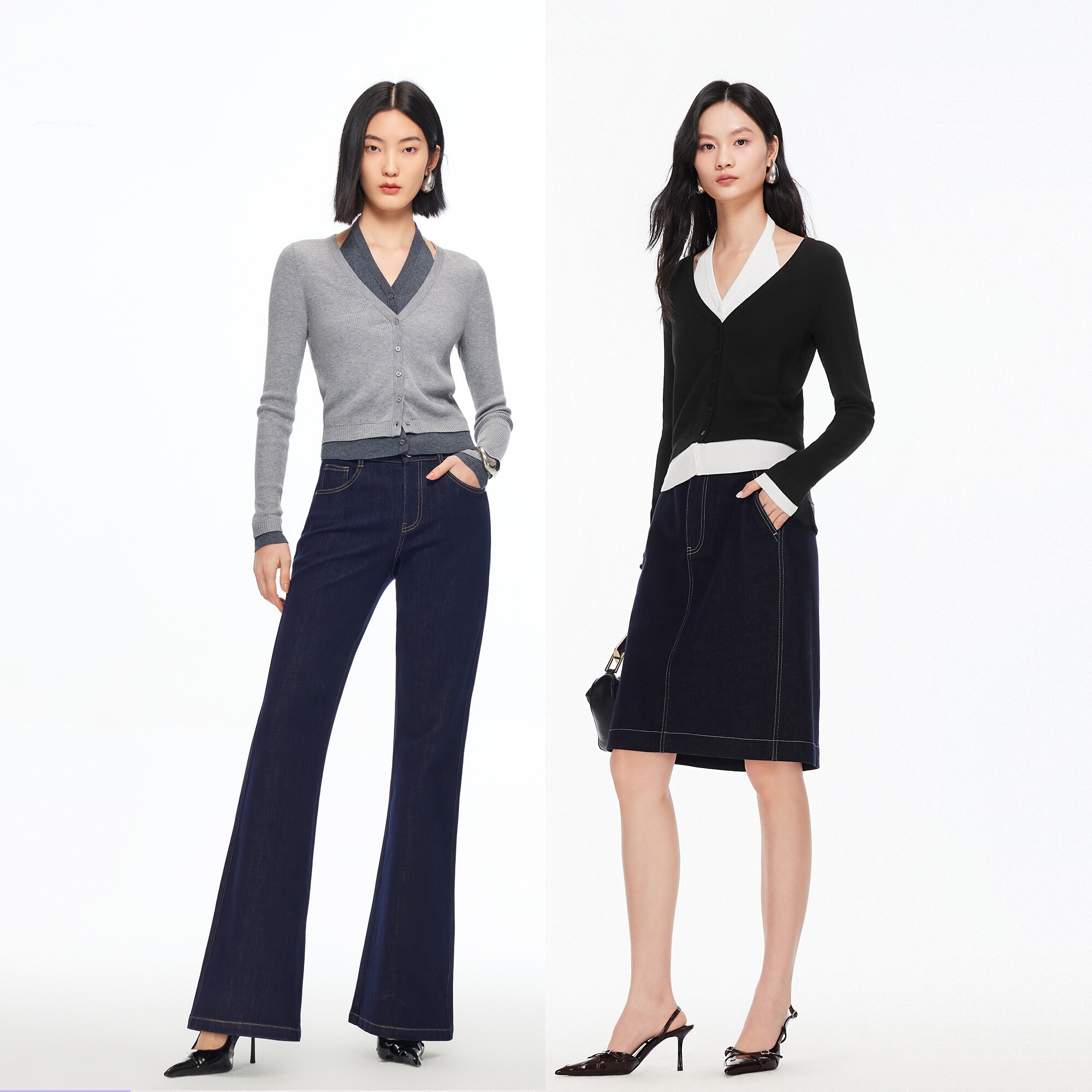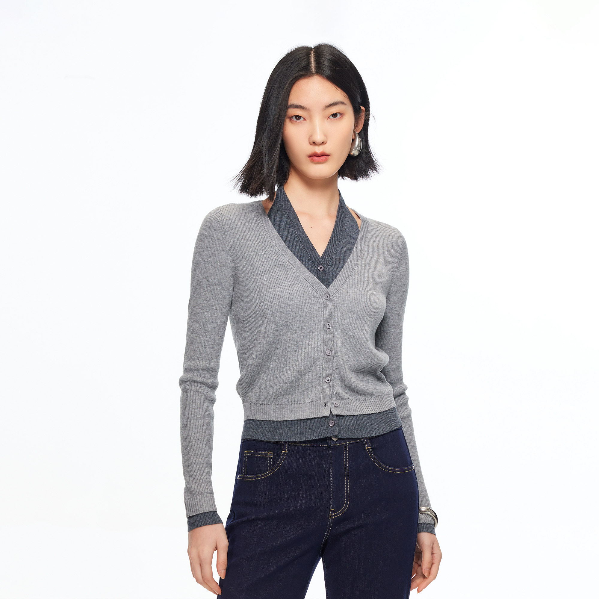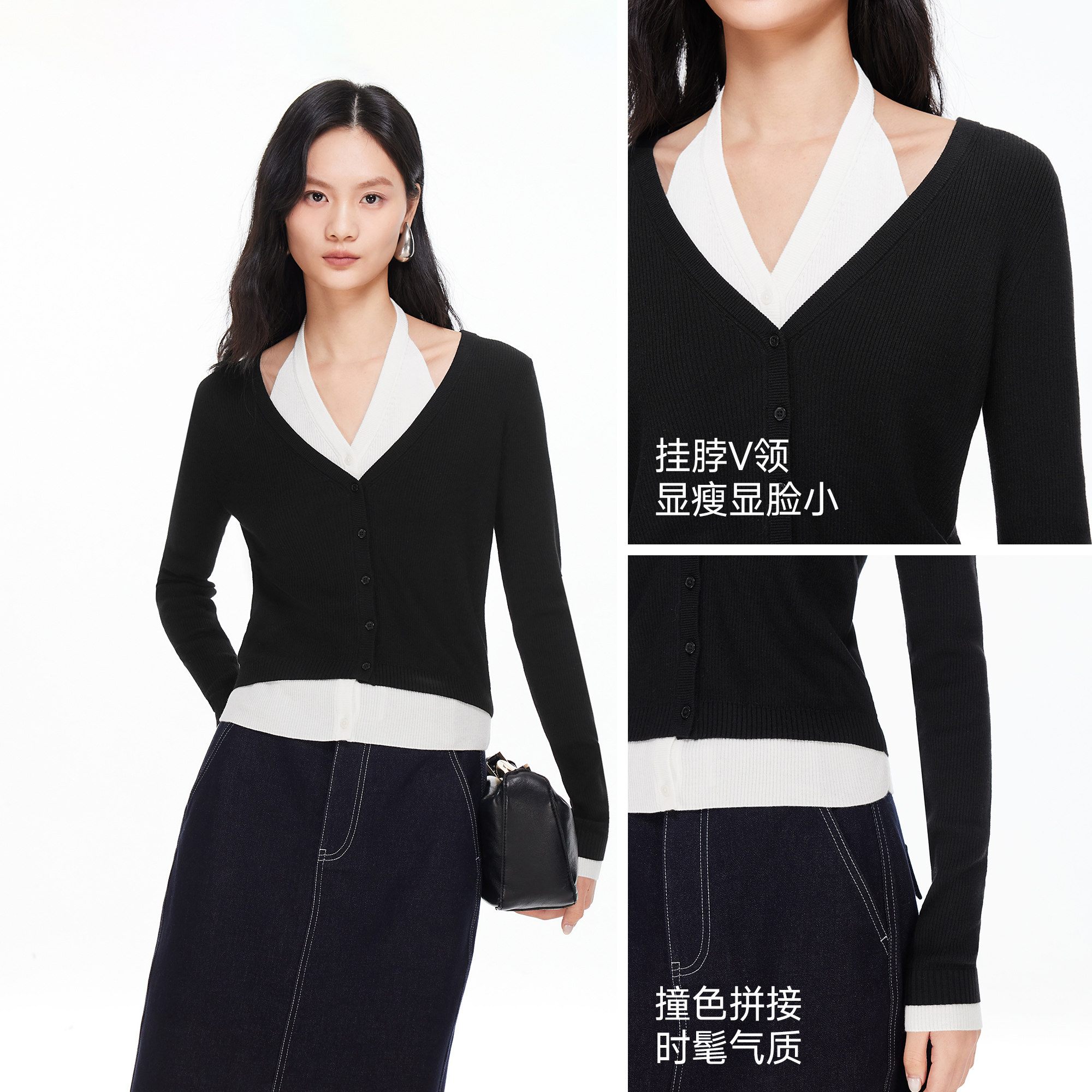 Vero Moda针织衫女26春季新款含绵羊毛挂脖修身拼接开衫326124027