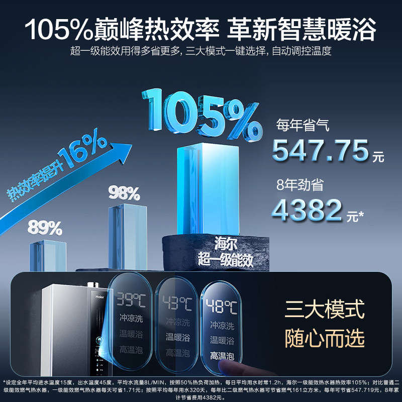 [焕新补贴]海尔燃气热水器天然气一级能效恒温16L升E5家用零冷水