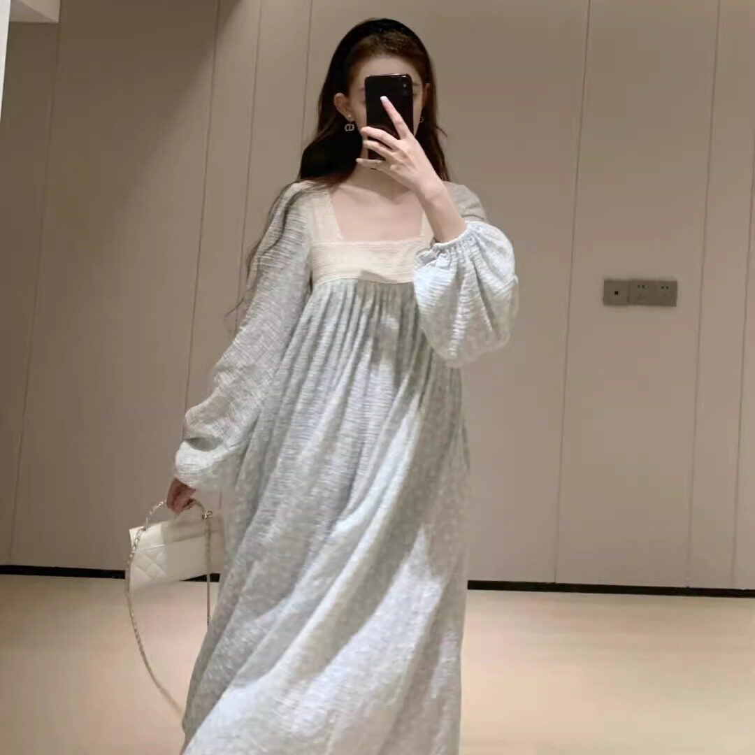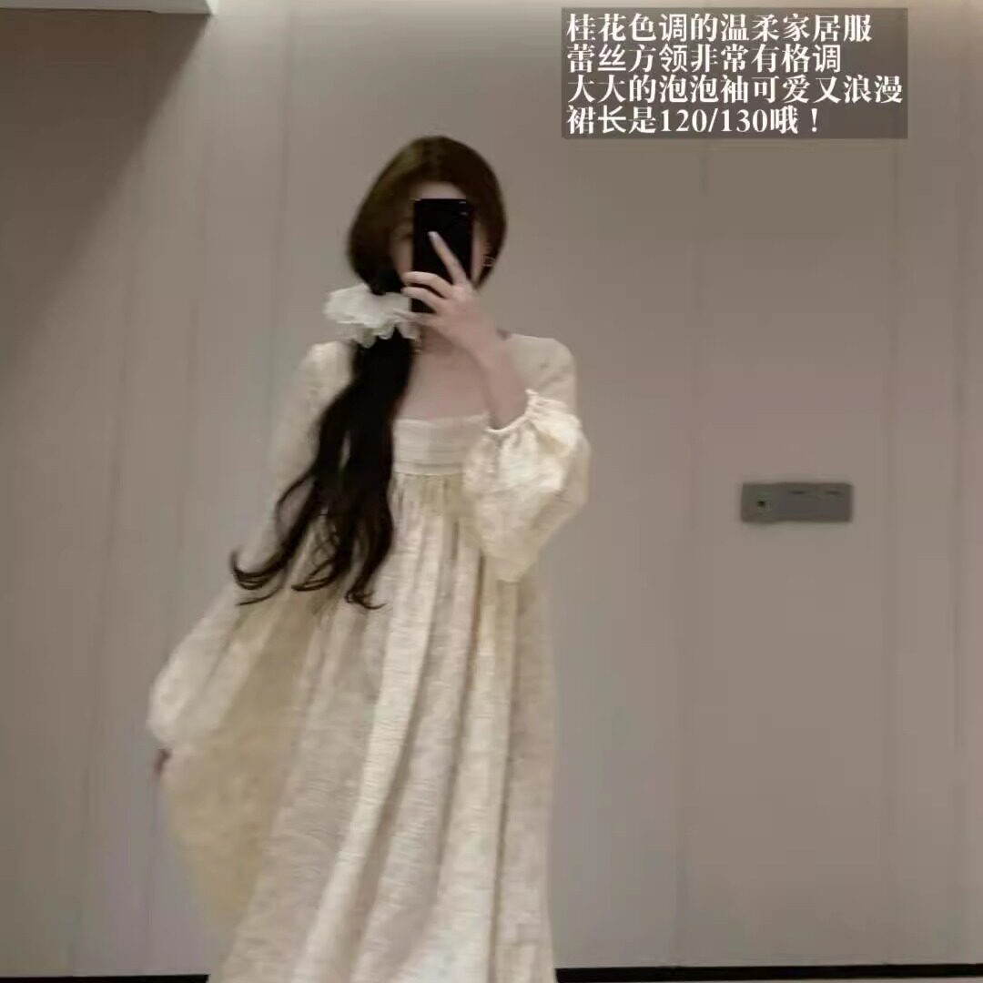 温柔又浪漫~纯棉睡裙女蕾丝碎花法式春秋长袖连衣裙外穿长款睡衣